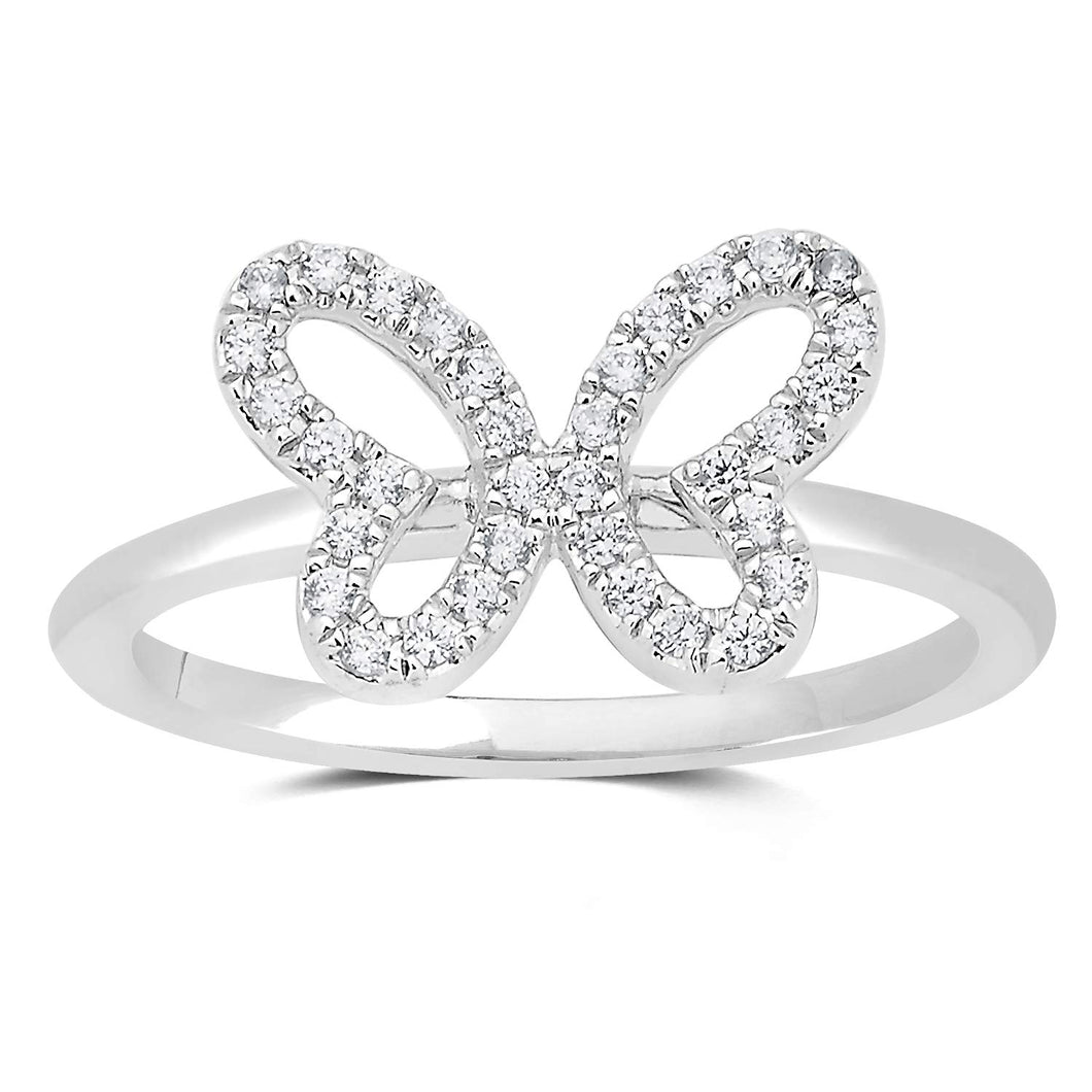 Jewelili Sterling Silver With 1/6 CTTW Natural White Diamond Butterfly Ring