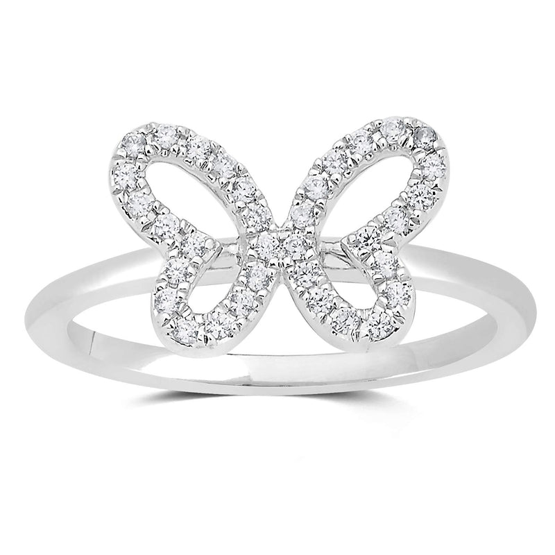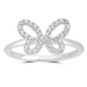 • Load image into Gallery viewer, Jewelili Butterfly Ring with Natural White Diamond in Sterling Silver 1/6 CTTW