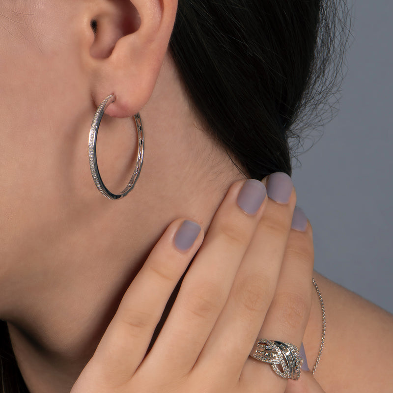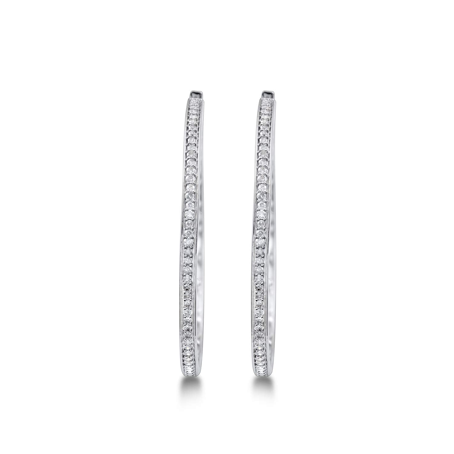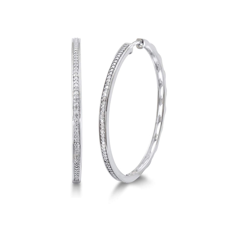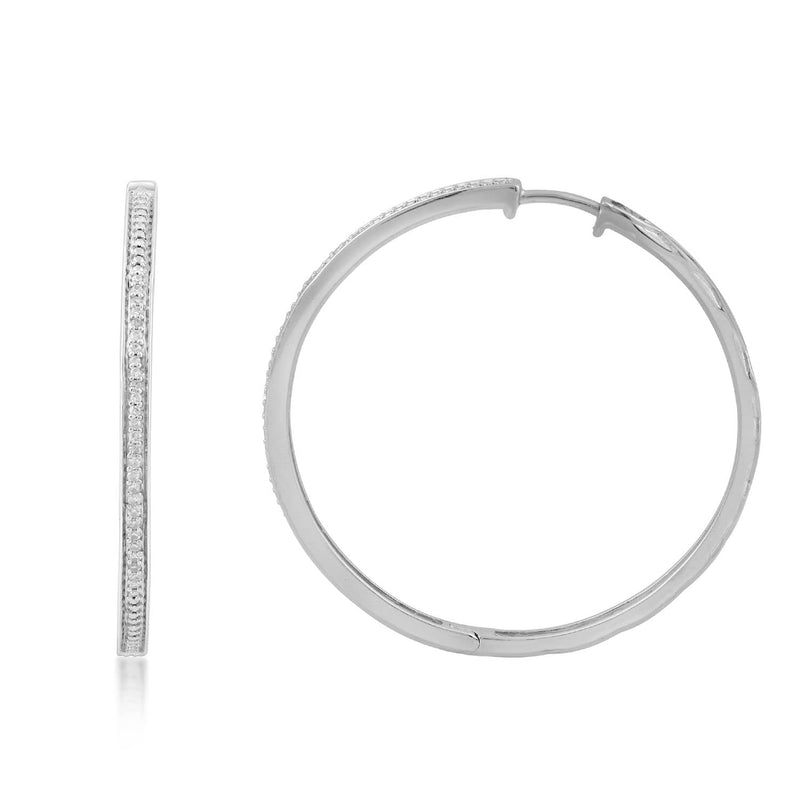 • Sterling Silver With 1/6 Cttw Natural White Diamond Hoop Earrings