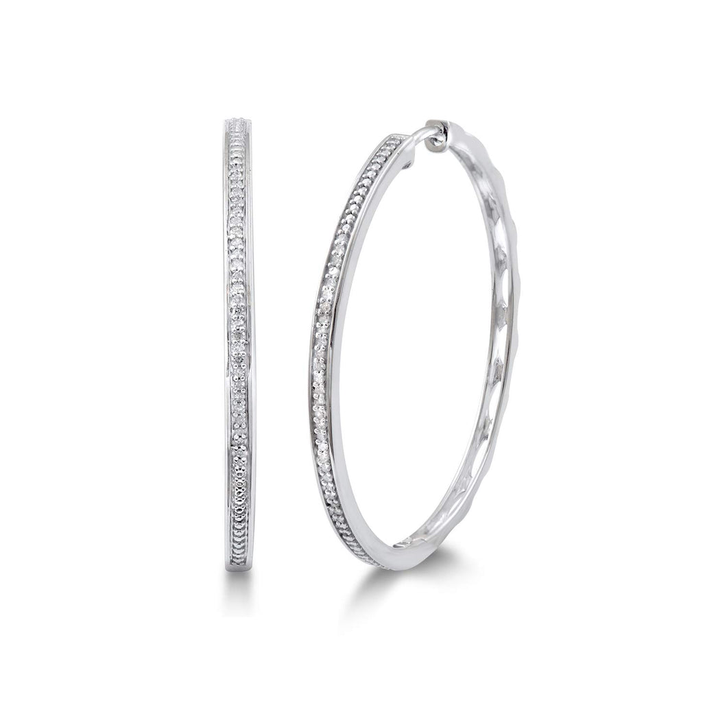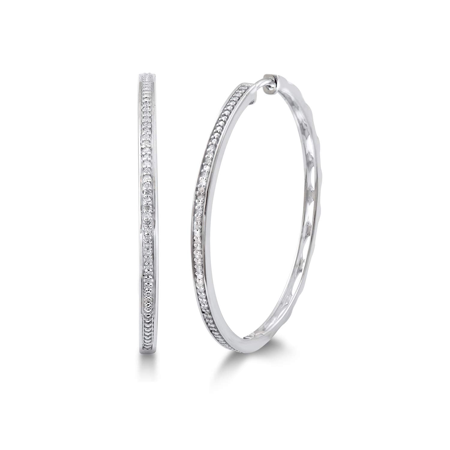Jewelili Sterling Silver With 1/6 CTTW Natural White Diamond Hoop Earrings