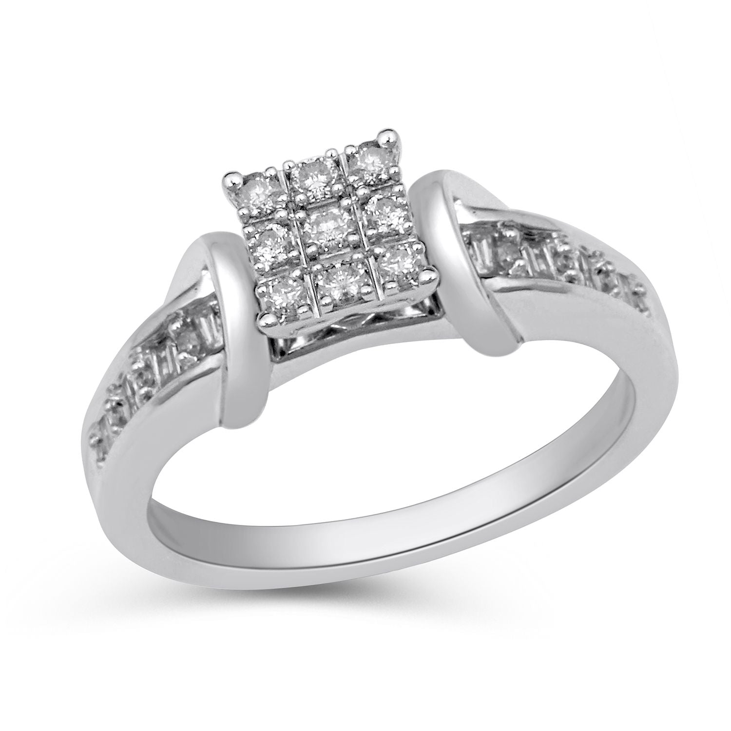 Jewelili Sterling Silver With 1/6 Cttw Natural White Diamonds Engagement Ring