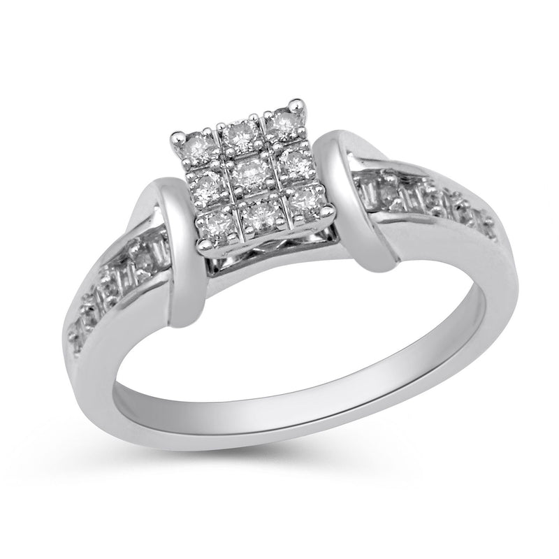 • Sterling Silver With 1/6 Cttw Natural White Diamonds Engagement Ring