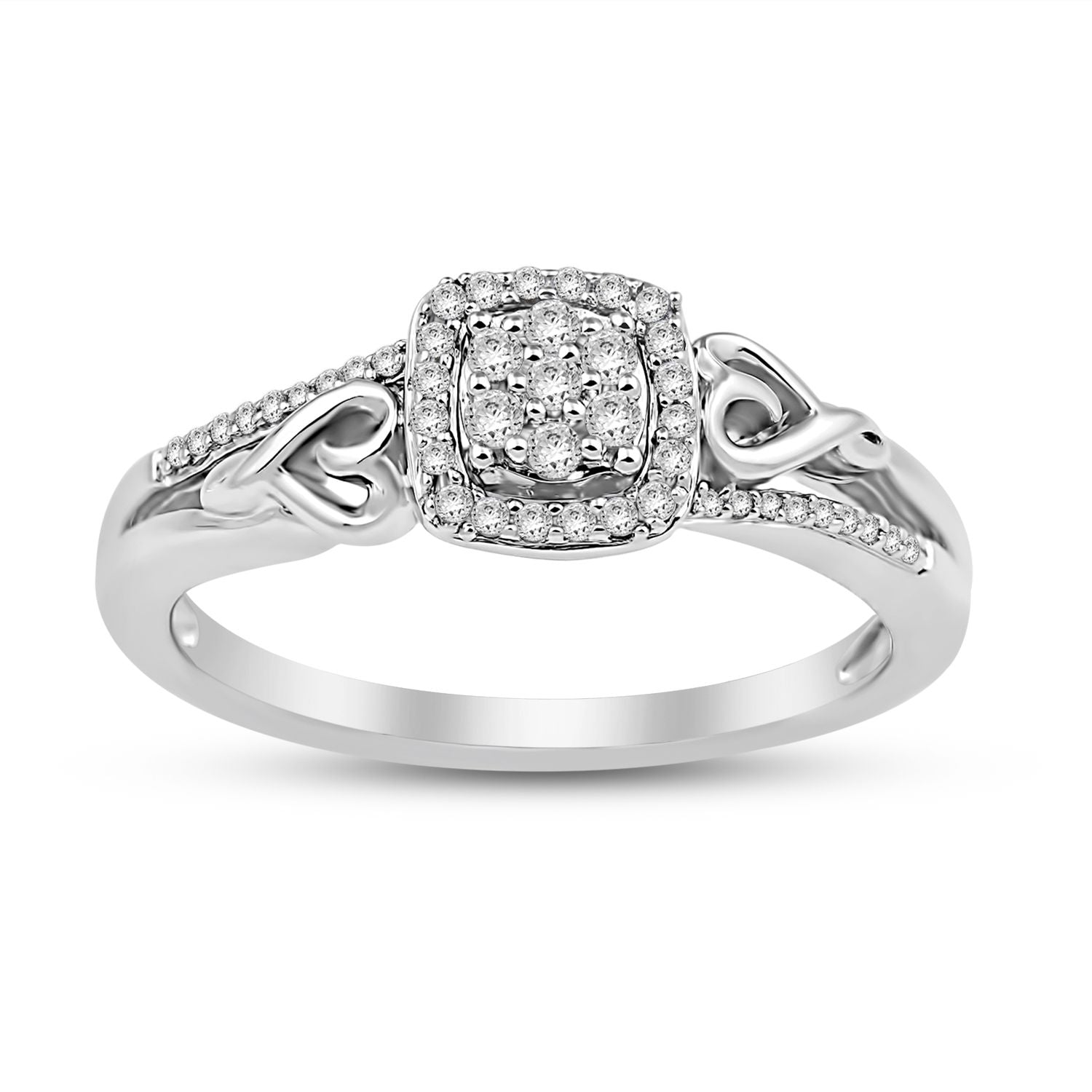 Jewelili Sterling Silver With 1/6 CTTW Natural White Round Diamonds Bridal Ring