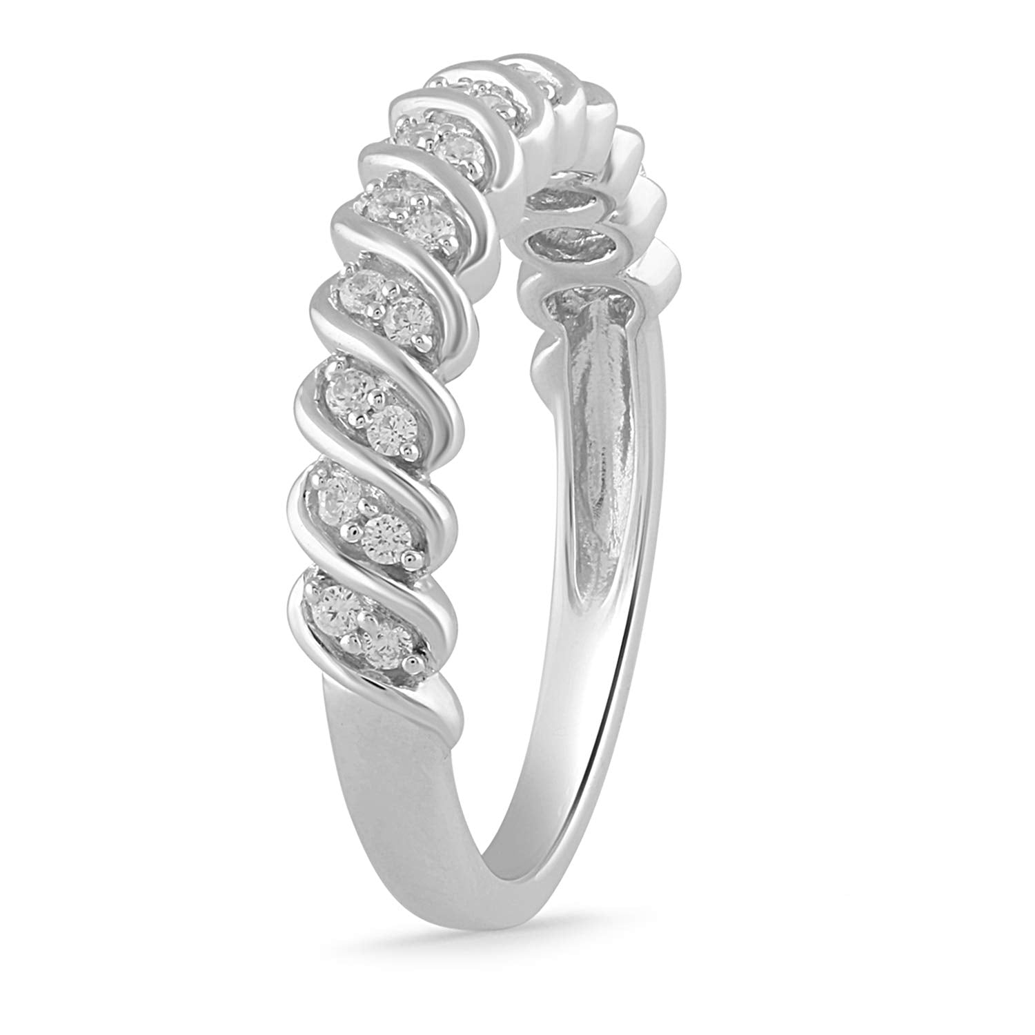 • Sterling Silver with 1/6 Cttw Natural White Round Diamonds Anniversary Ring