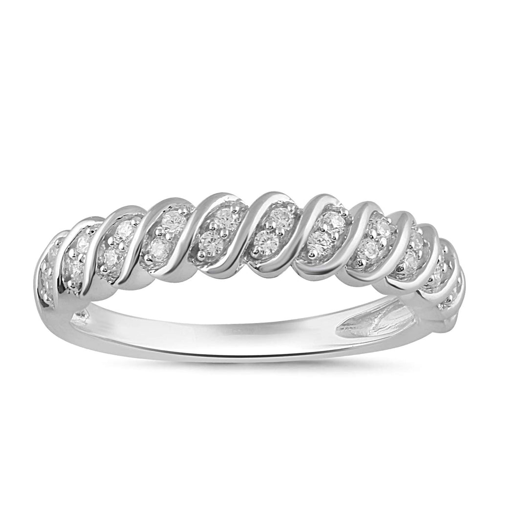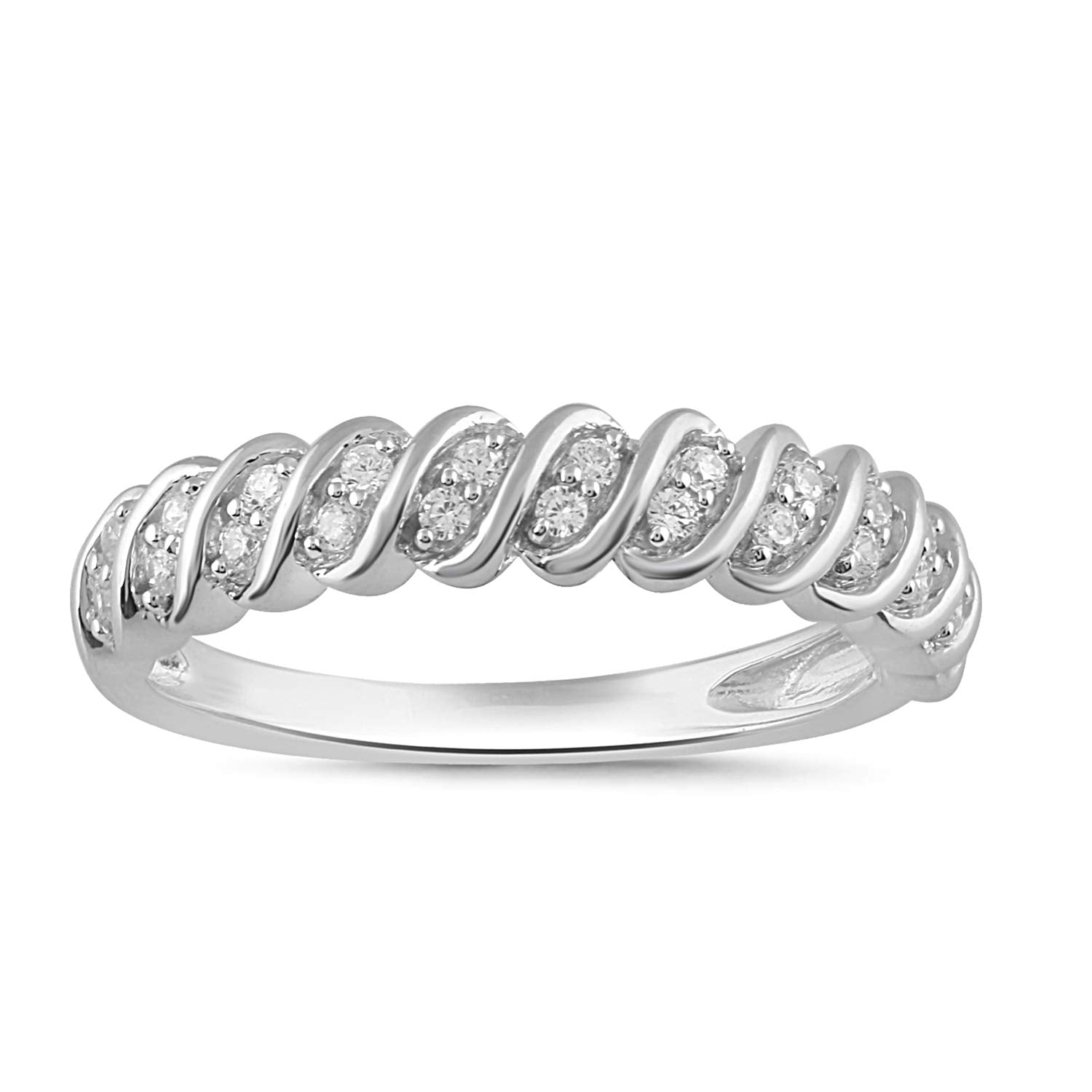 Jewelili Sterling Silver with 1/6 CTTW Natural White Round Diamonds Anniversary Ring