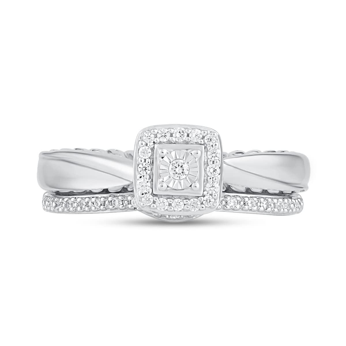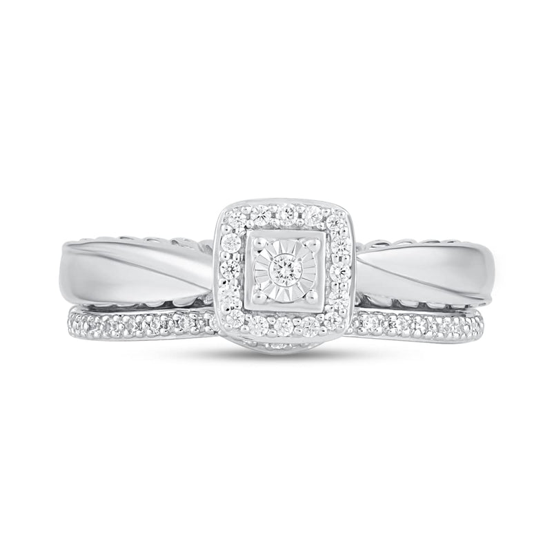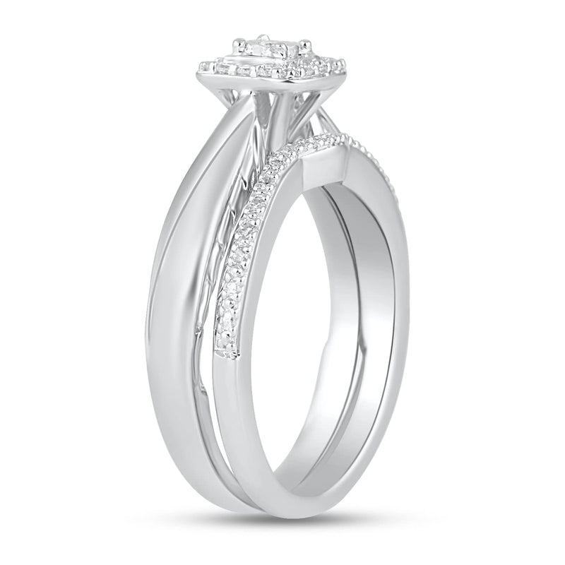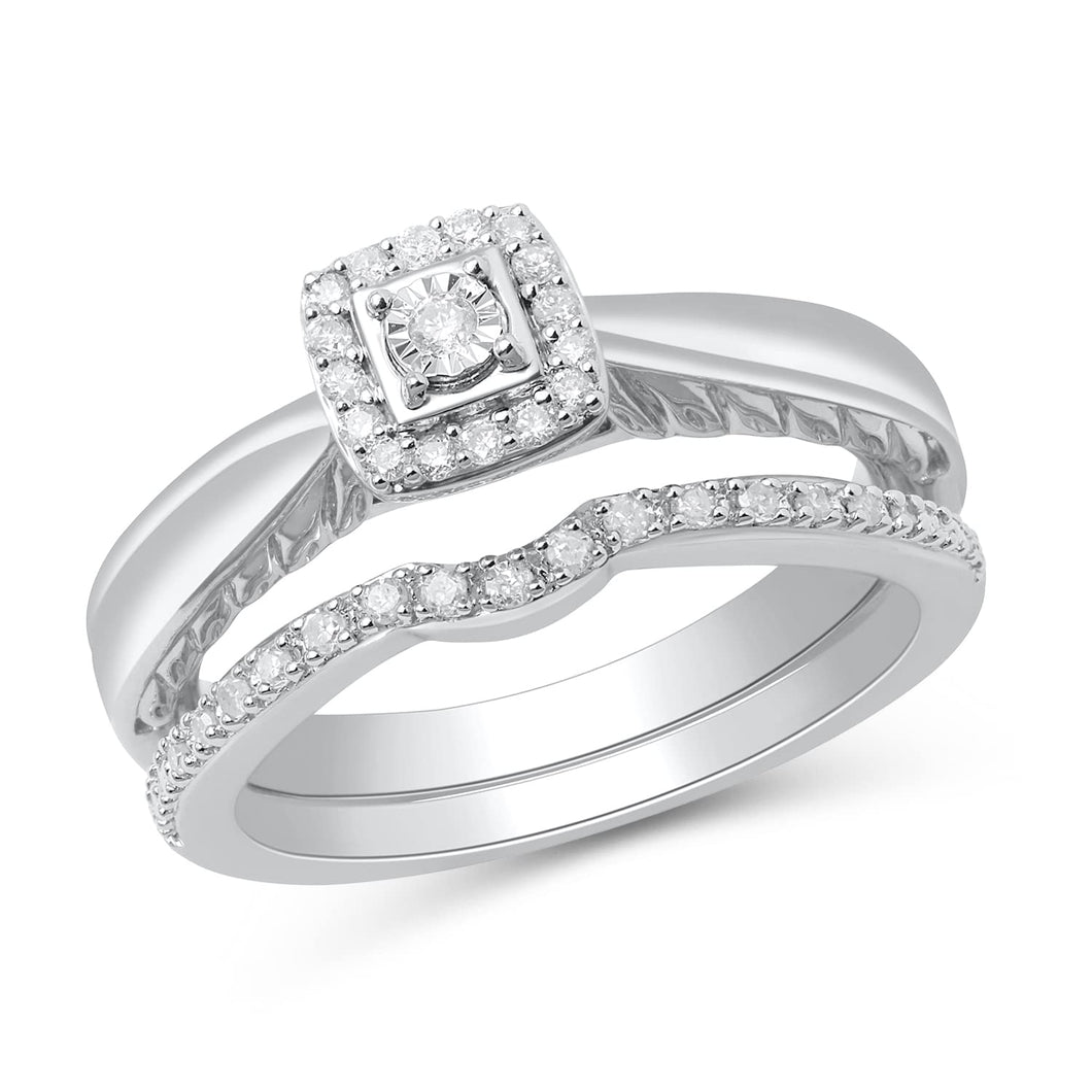 • Sterling Silver with 1/6 Cttw Natural White Round Diamonds Bridal Set