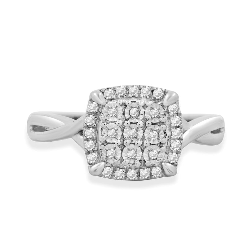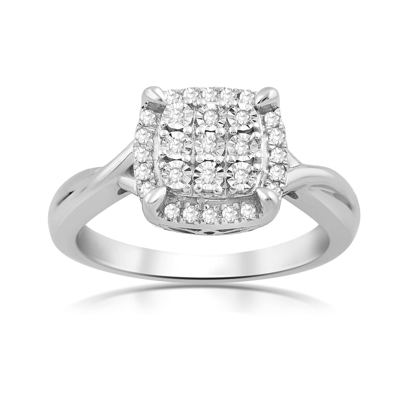 • Sterling Silver With 1/6 Cttw Natural White Round Diamonds Engagement Ring