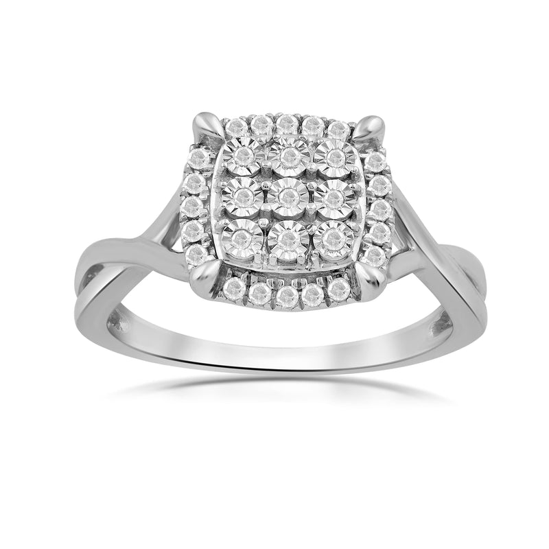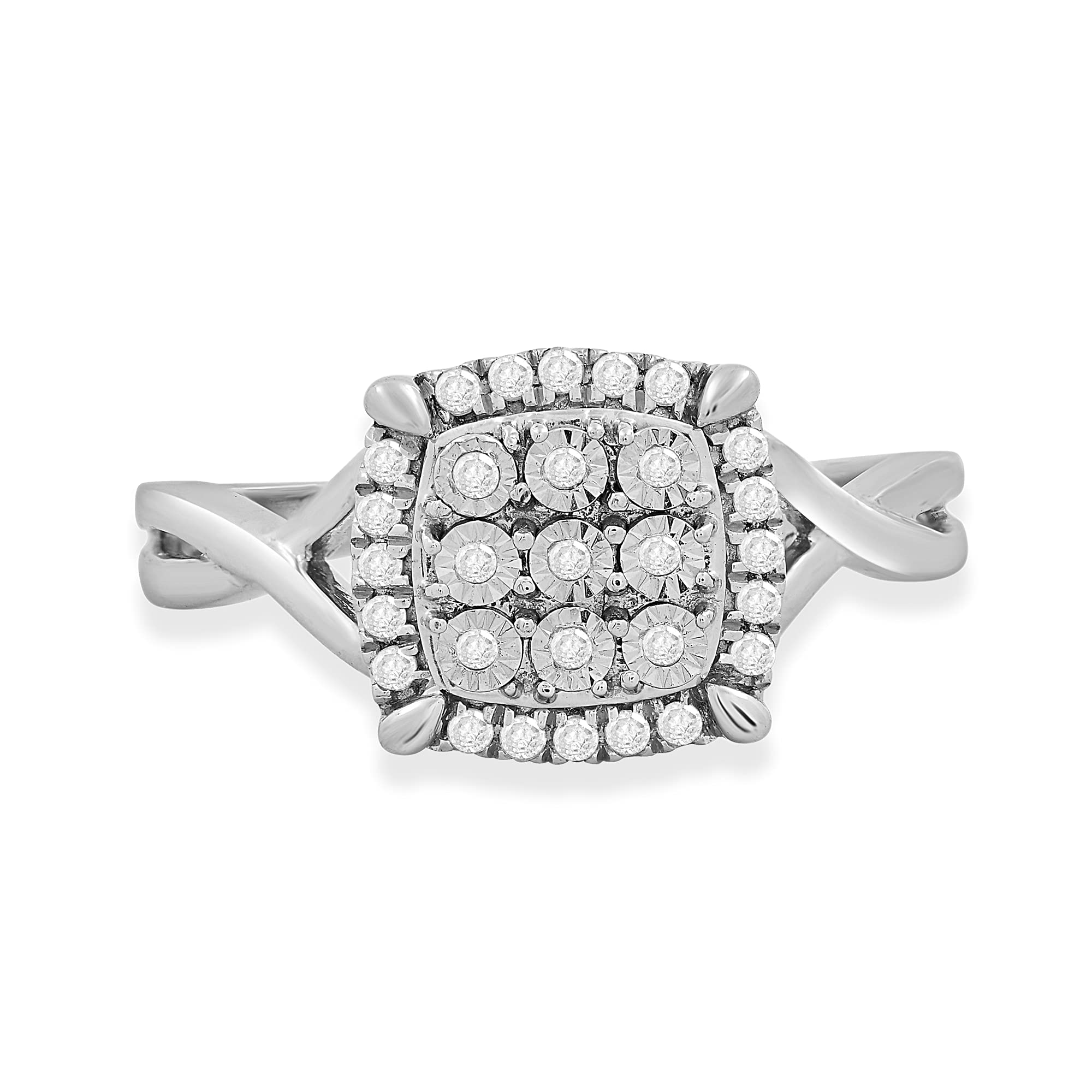 • Sterling Silver With 1/6 Cttw Natural White Round Diamonds Engagement Ring