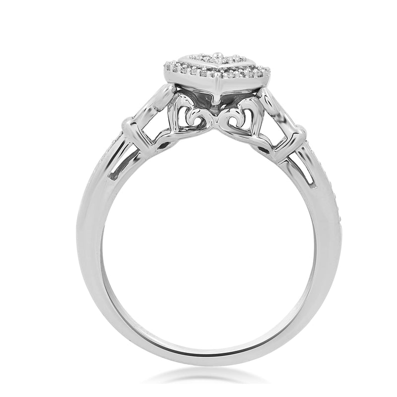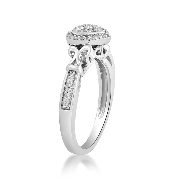 Jewelili Sterling Silver With 1/6 CTTW Natural White Round Diamonds Heart Engagement Ring