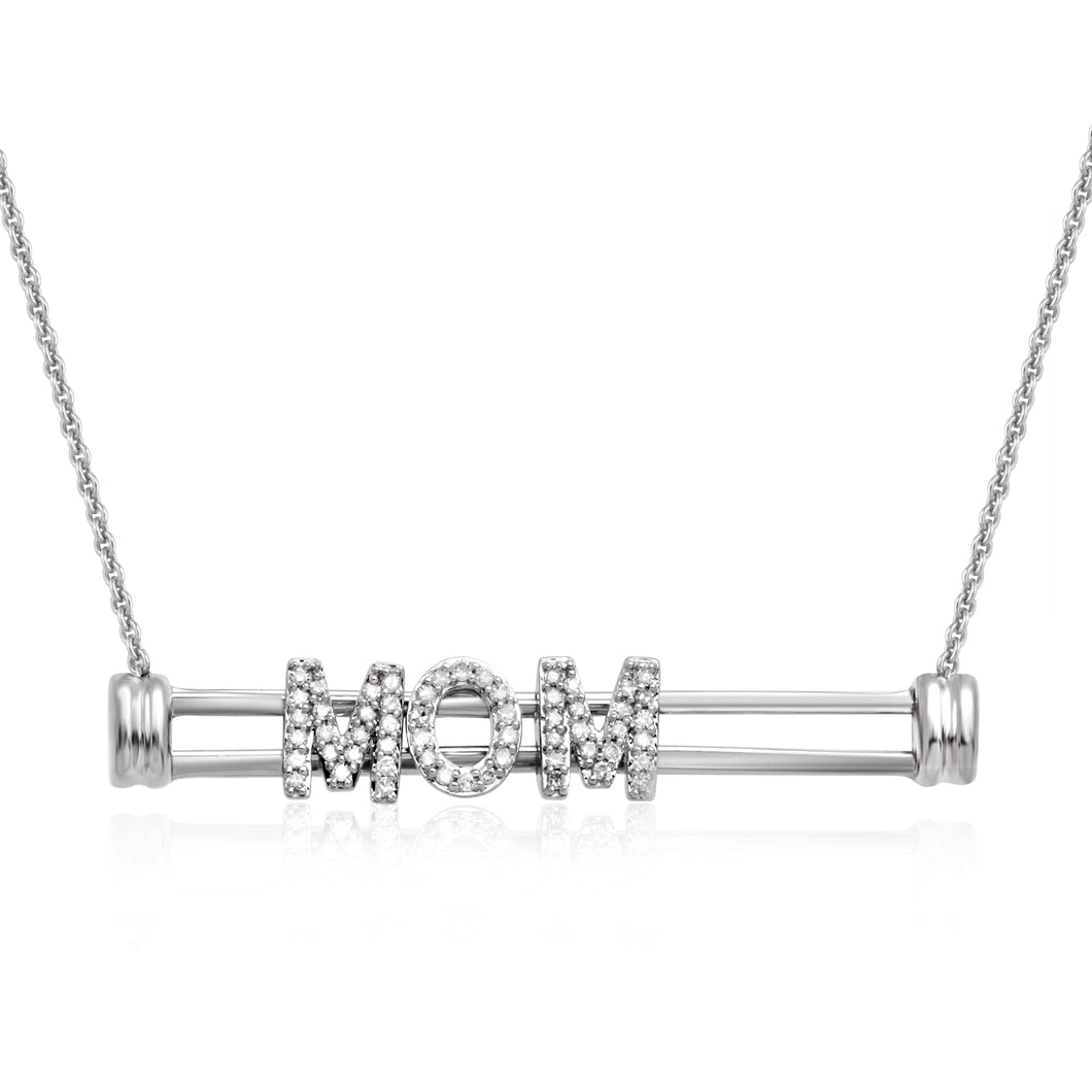 • Sterling Silver With 1/6 Cttw Natural White Round Diamonds MOM Pendant Necklace
