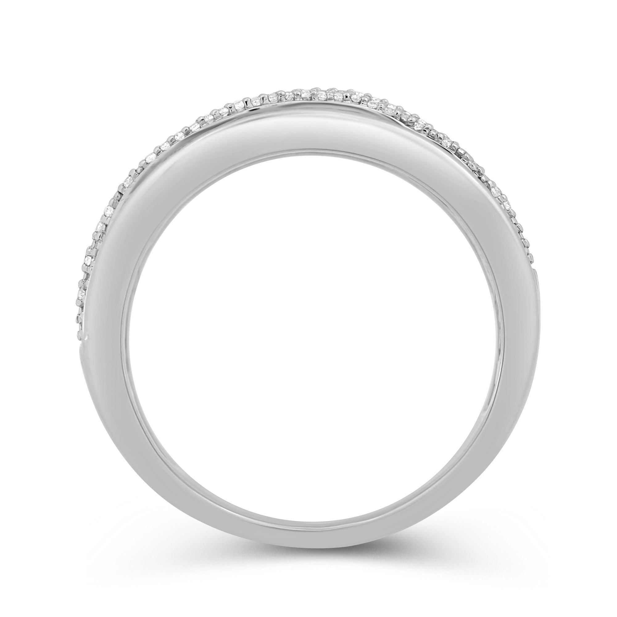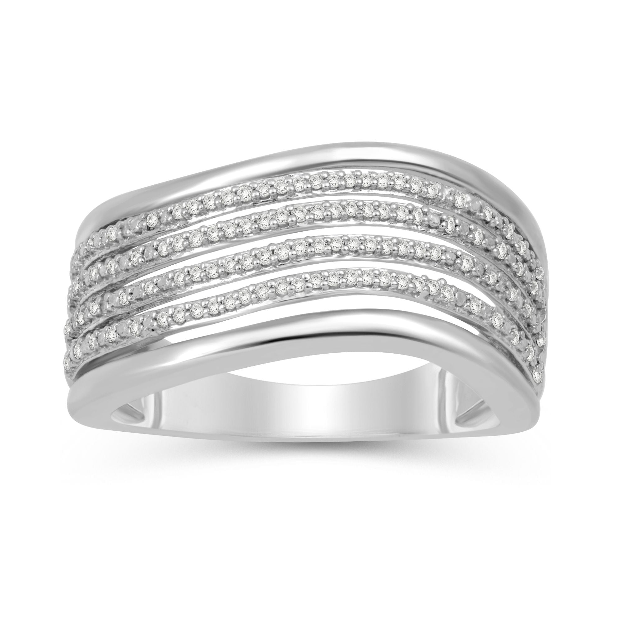 • Sterling Silver With 1/6 Cttw Round Natural White Diamonds Wavy Ring