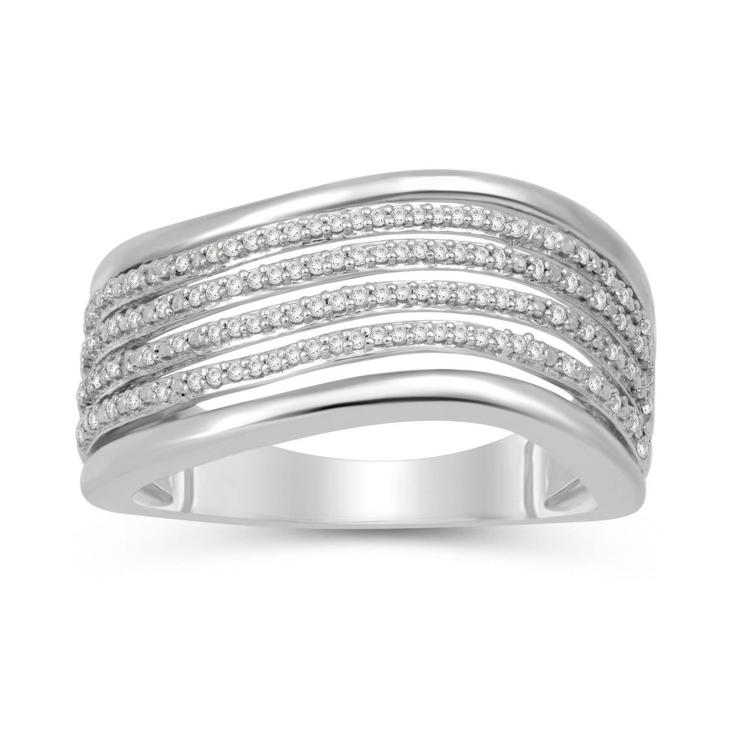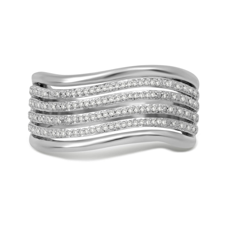 Jewelili Sterling Silver With 1/6 CTTW Round Natural White Diamonds Wavy Ring