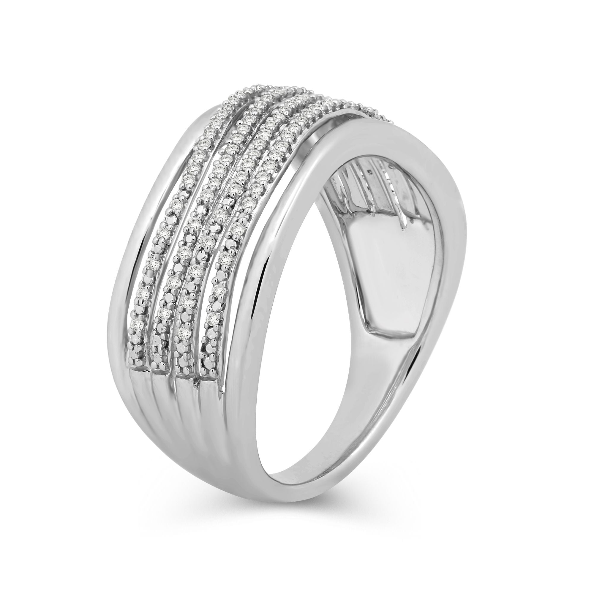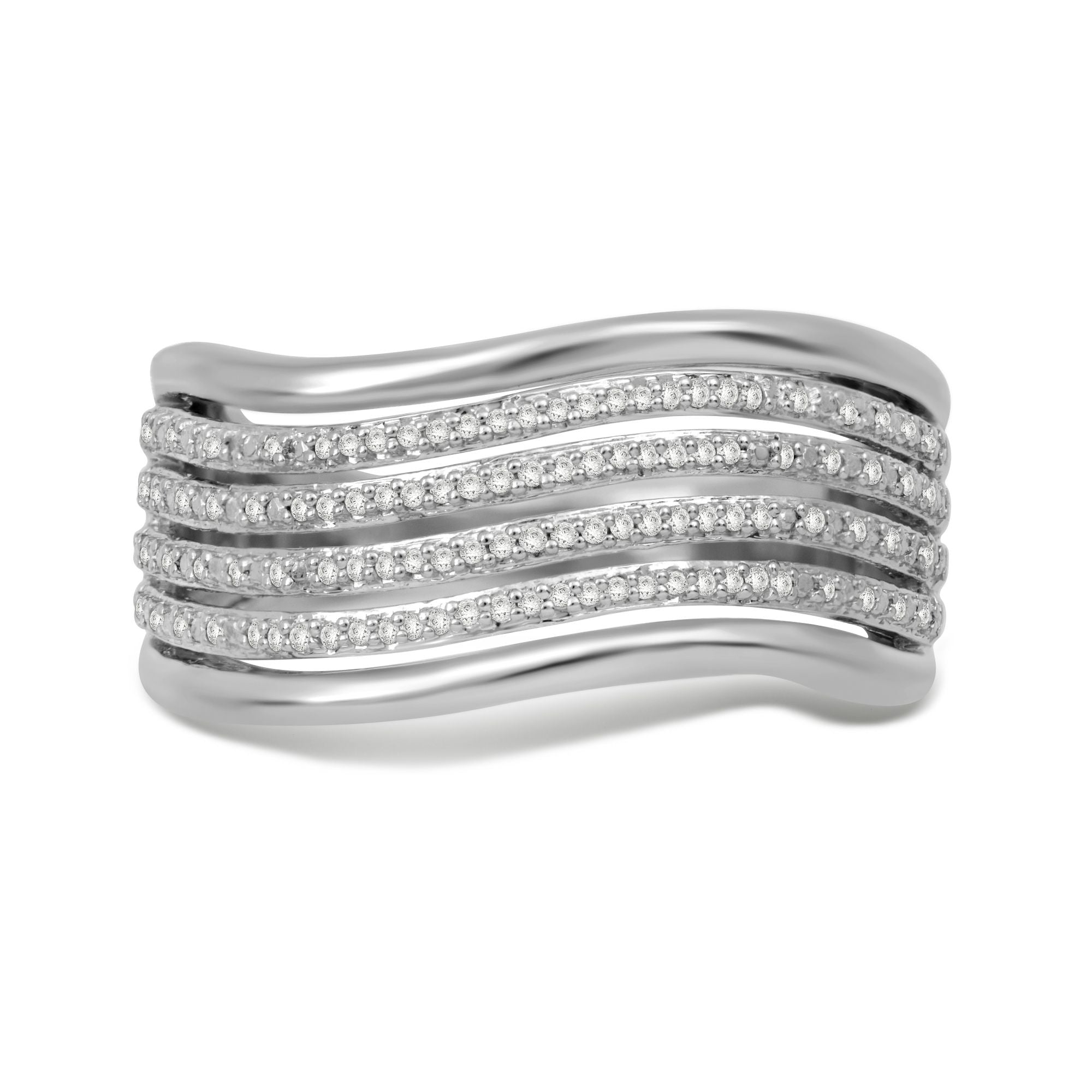 Details: Sterling Silver With 1/6 Cttw Round Natural White Diamonds Wavy Ring