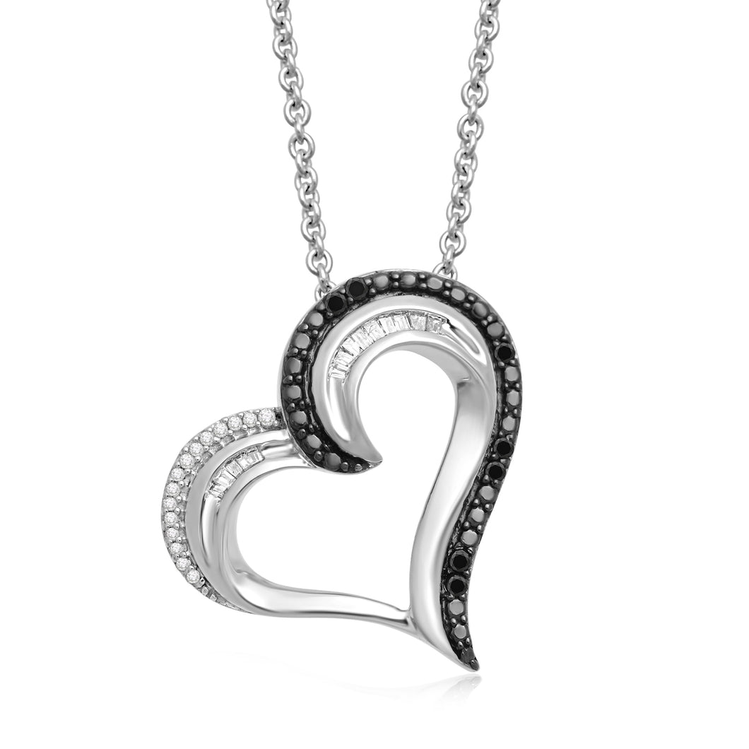 • Sterling Silver with 1/6 CTTW Treated Black and White Diamonds Heart Pendant Necklace