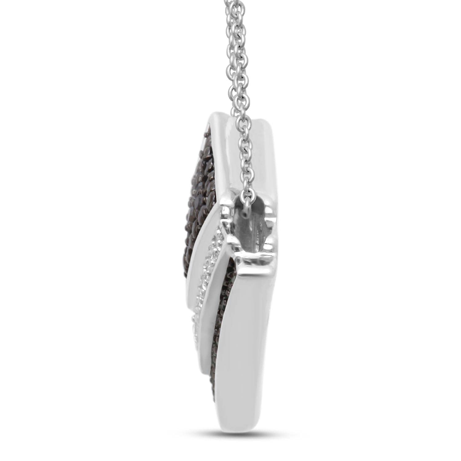 Jewelili Sterling Silver With 1/6 CTTW Treated Black, Green and Natural White Round Diamonds Triangle Pendant Necklace