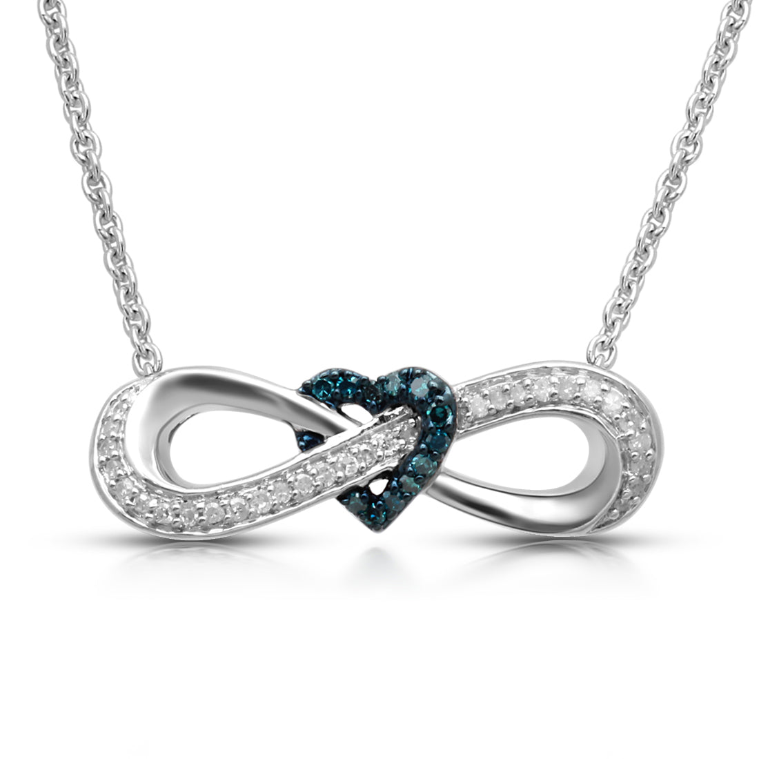 Jewelili Sterling Silver With 1/6 CTTW Treated Blue and Natural White Diamonds Infinity Heart Pendant Necklace
