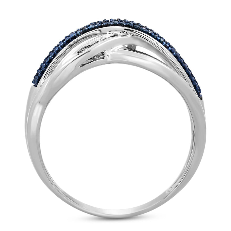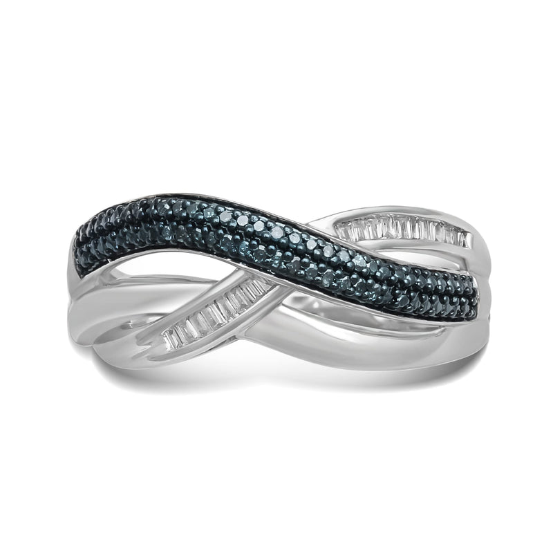 • Sterling Silver With 1/6 Cttw Treated Blue Diamonds and Natural White Diamonds Criss Cross Ring