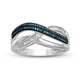 • Load image into Gallery viewer, Jewelili Sterling Silver With 1/6 CTTW Treated Blue Diamonds and Natural White Diamonds Criss Cross Ring