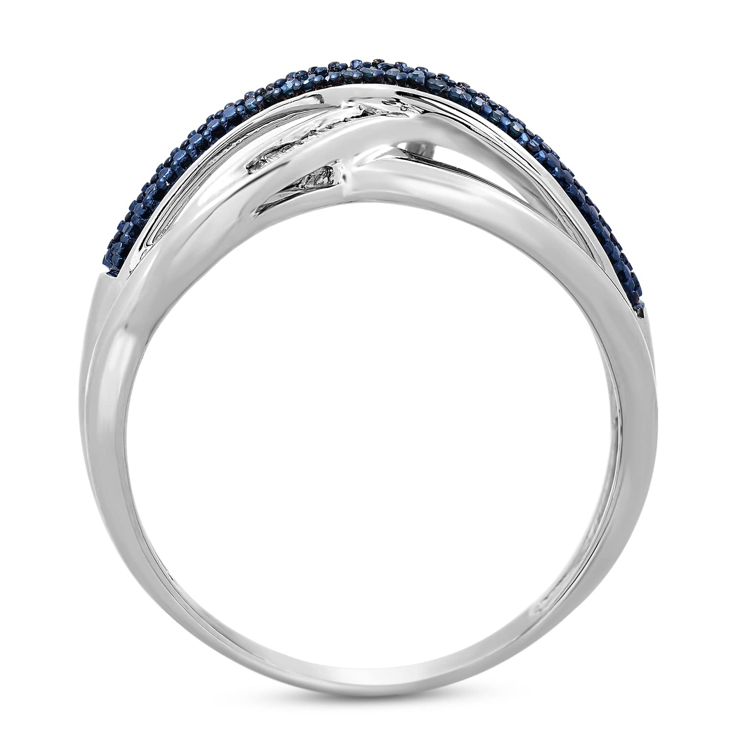 Jewelili Sterling Silver With 1/6 CTTW Treated Blue Diamonds and Natural White Diamonds Criss Cross Ring