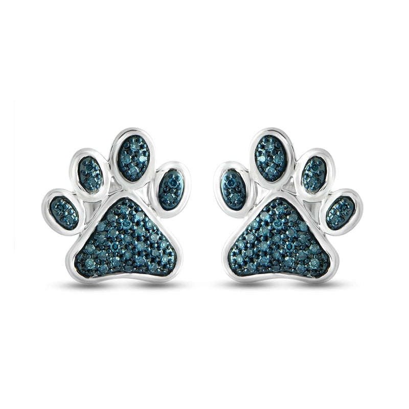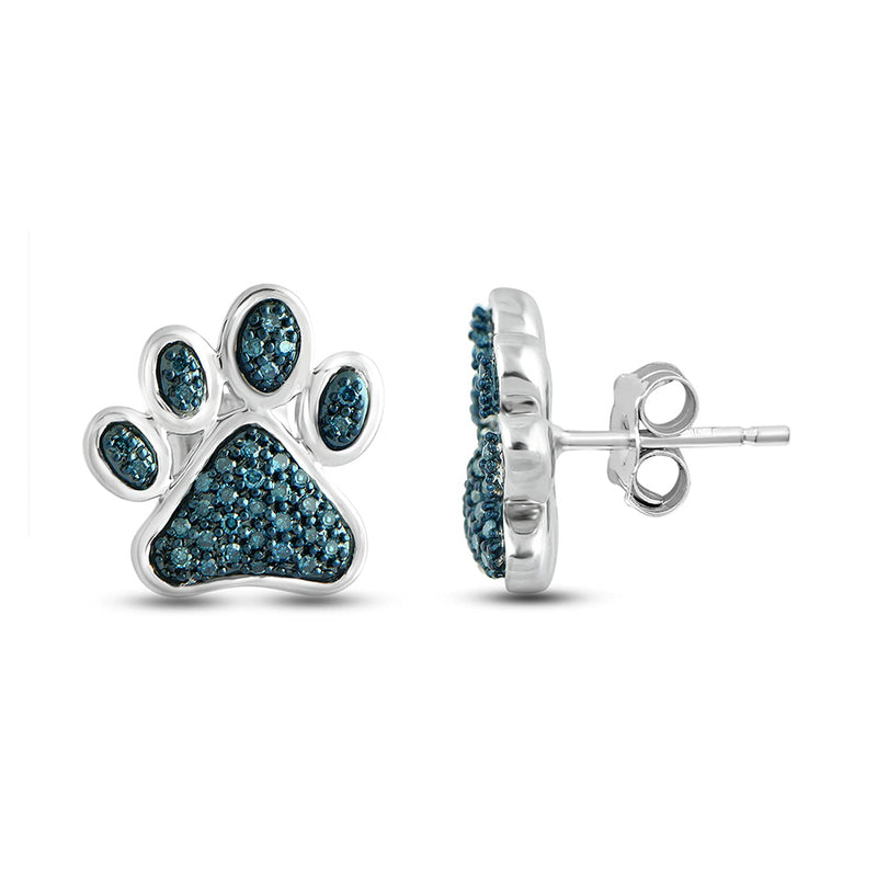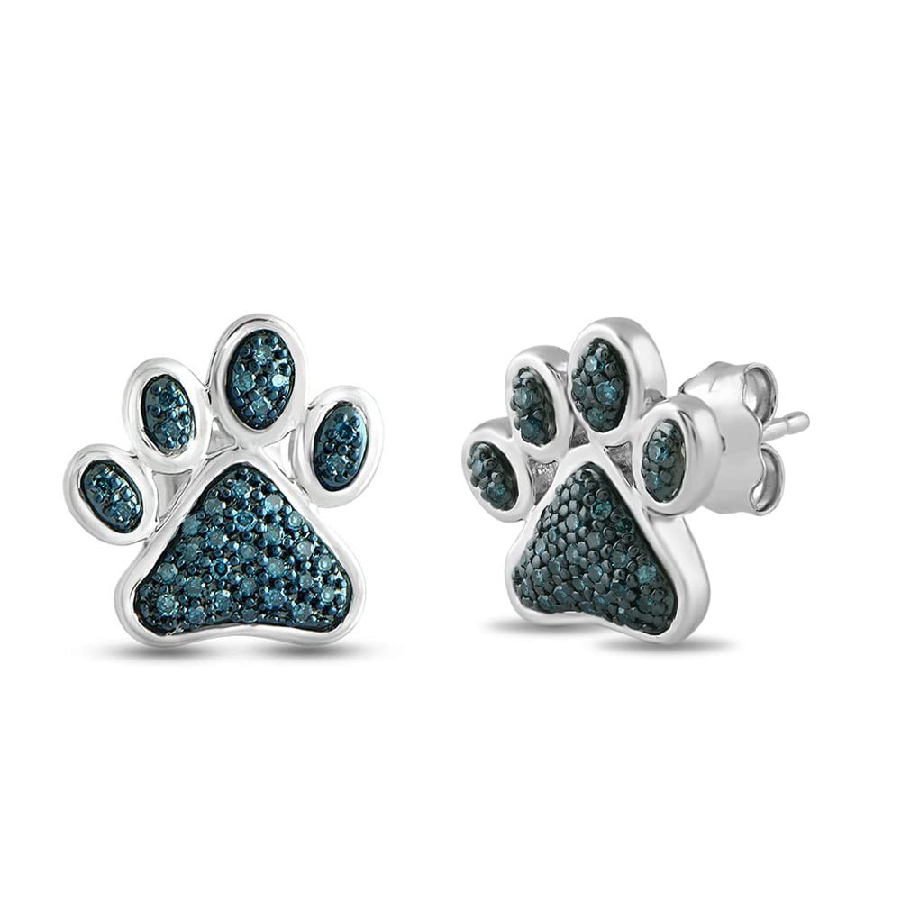 Details: Sterling Silver With 1/6 Cttw Treated Blue Diamond Dog Paw Stud Earrings