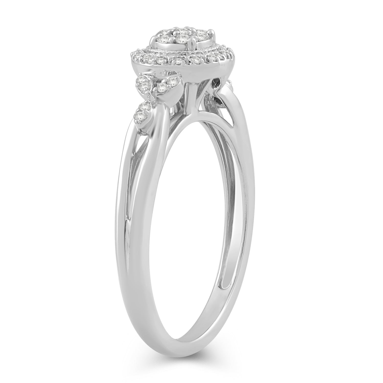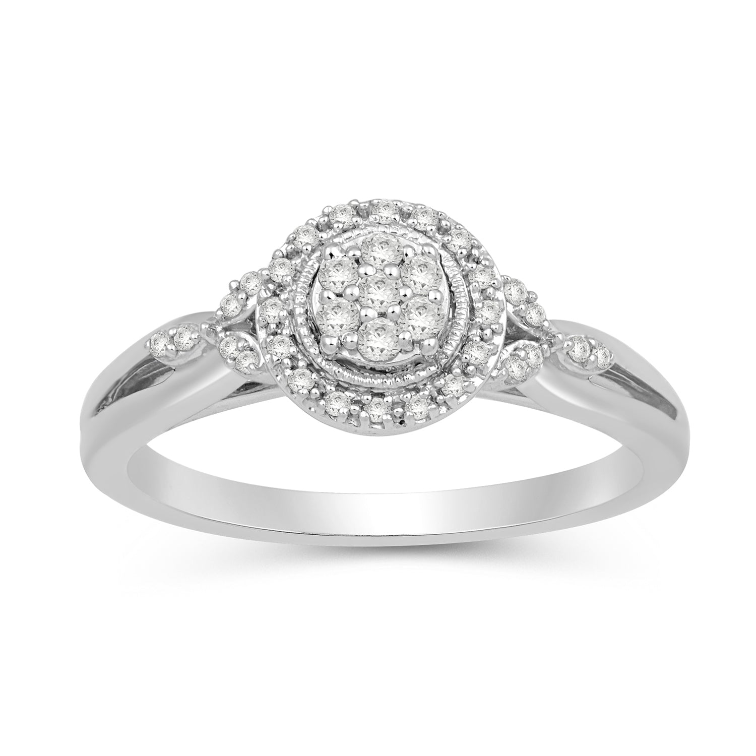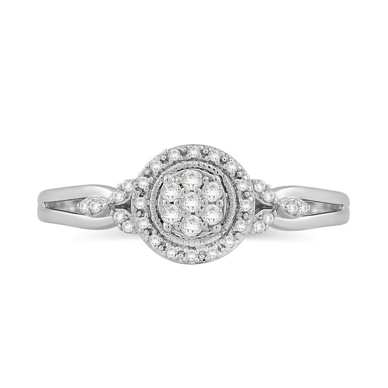 Jewelili Sterling Silver With 1/6 CTTW Round Natural White Diamonds Cluster Ring