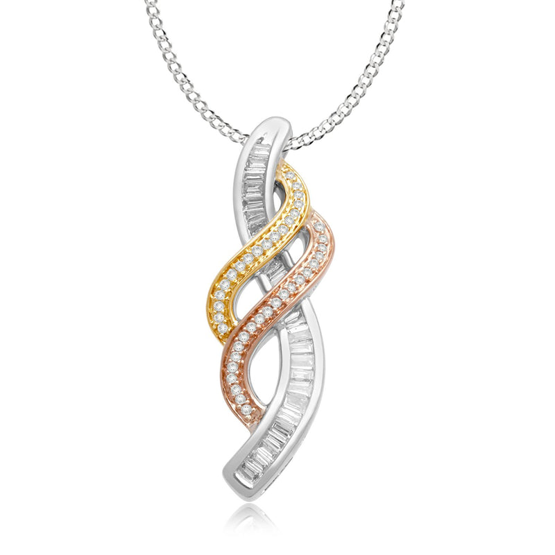 • Sterling Silver With 10K Rose and Yellow Gold With 1/4 Cttw Natural White Diamond Pendant Necklace