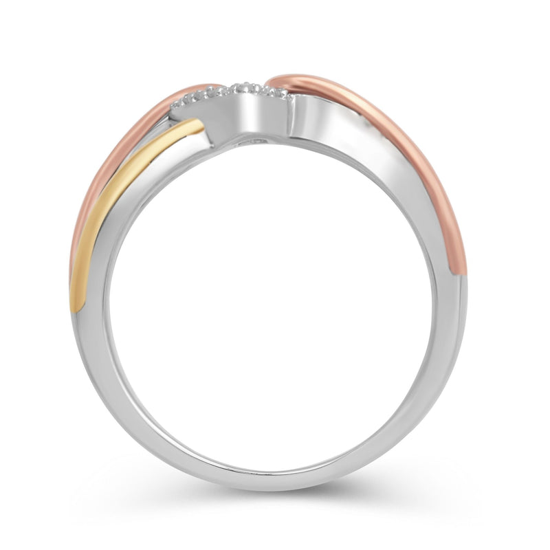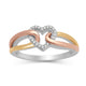 • Sterling Silver With 10K Yellow and Rose Gold Diamond Heart Ring