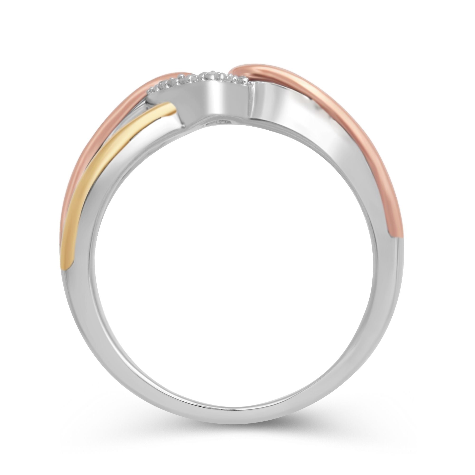 Jewelili Sterling Silver With 10K Yellow and Rose Gold Diamonds Heart Ring
