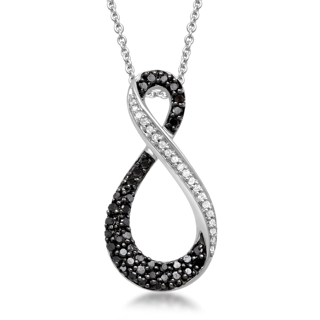Jewelili Sterling Silver With 3/8 CTTW Treated Black Diamonds and Natural White Round Diamonds Infinity Pendant Necklace