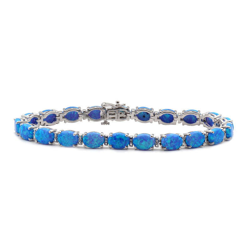 • This bracelet for women is accented with the October Birthstone – Opal, which is believed to bring the wearer peace and luck and also protects her from evil. Besides being a great gift for October babies, this Created Blue Opal bracelet is also a precious addition to your jewelry collection with its luminous bright and dark colors that are reflected of its surface