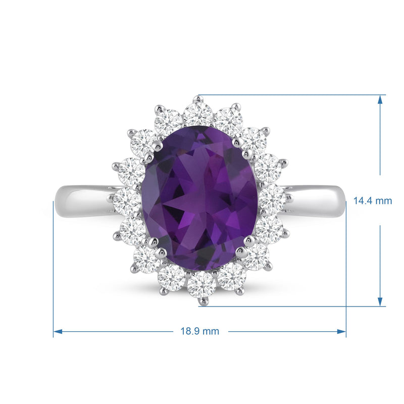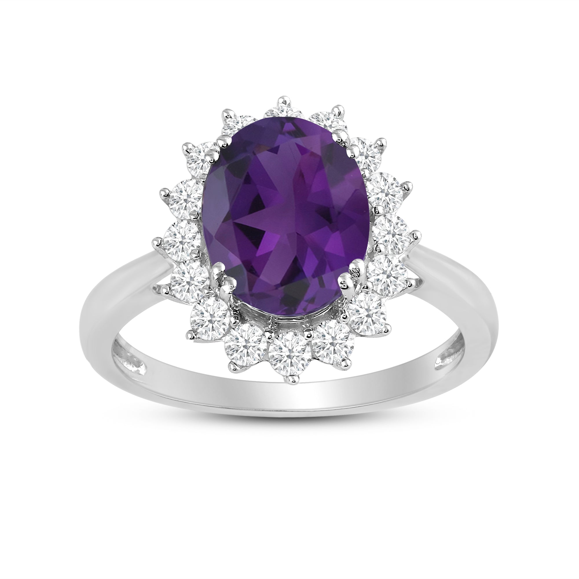 Jewelili Sterling Silver with Amethyst and Created White Sapphire Engagement Ring
