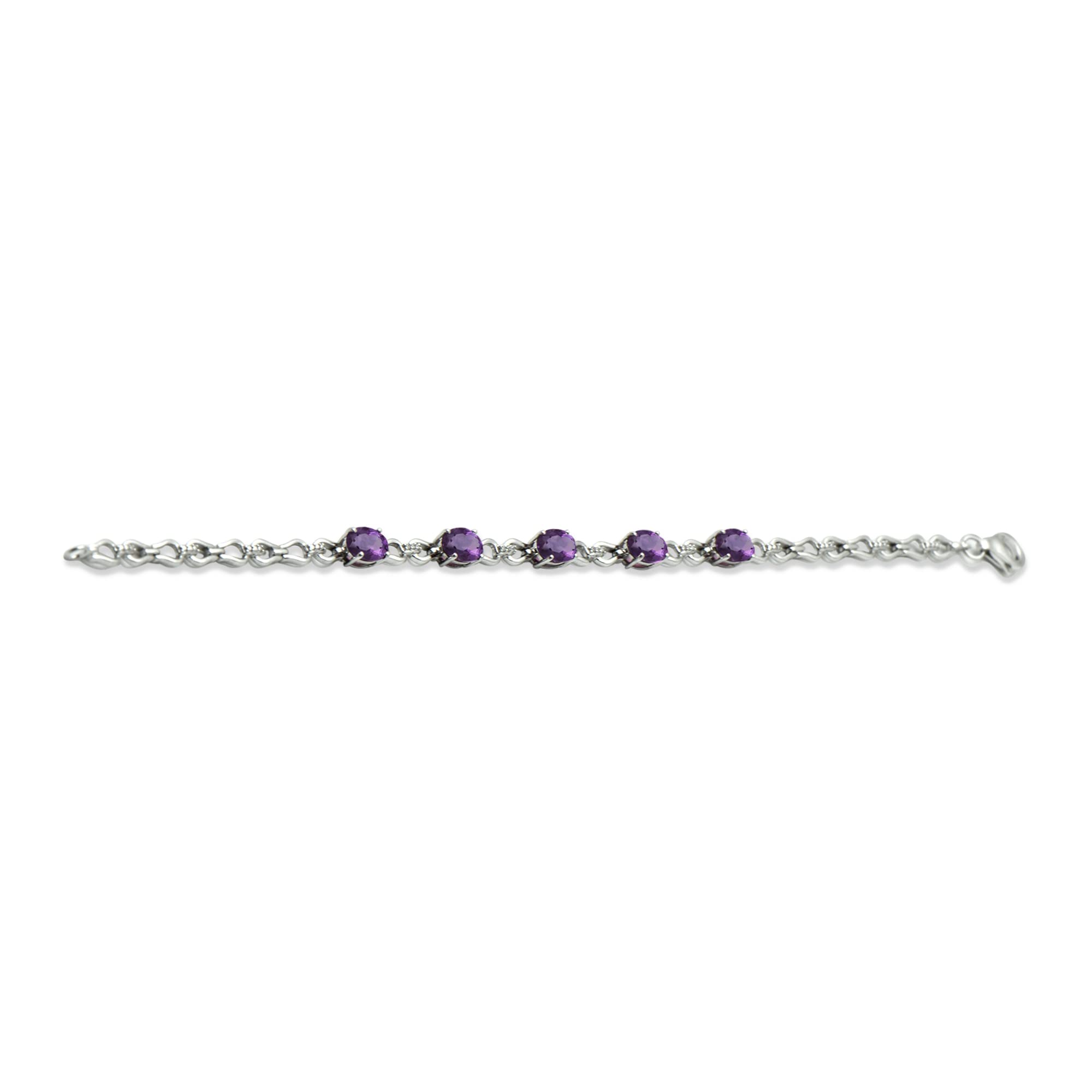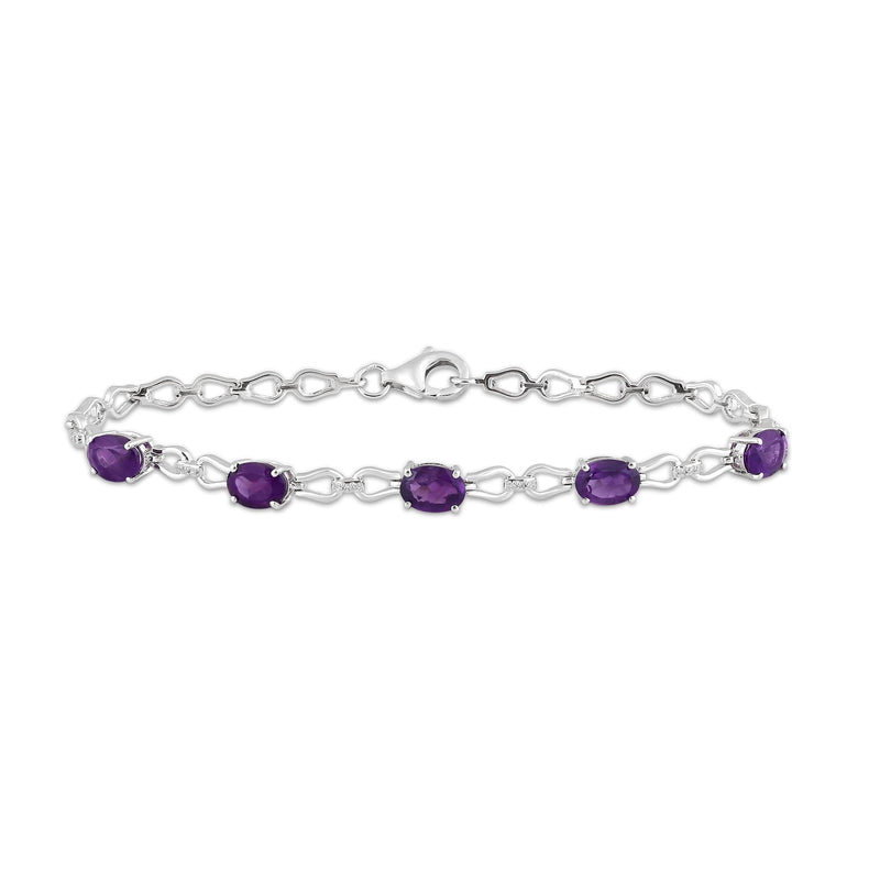 • Sterling Silver With Amethyst and Natural White Diamonds Bolo Bracelet, 7.5"