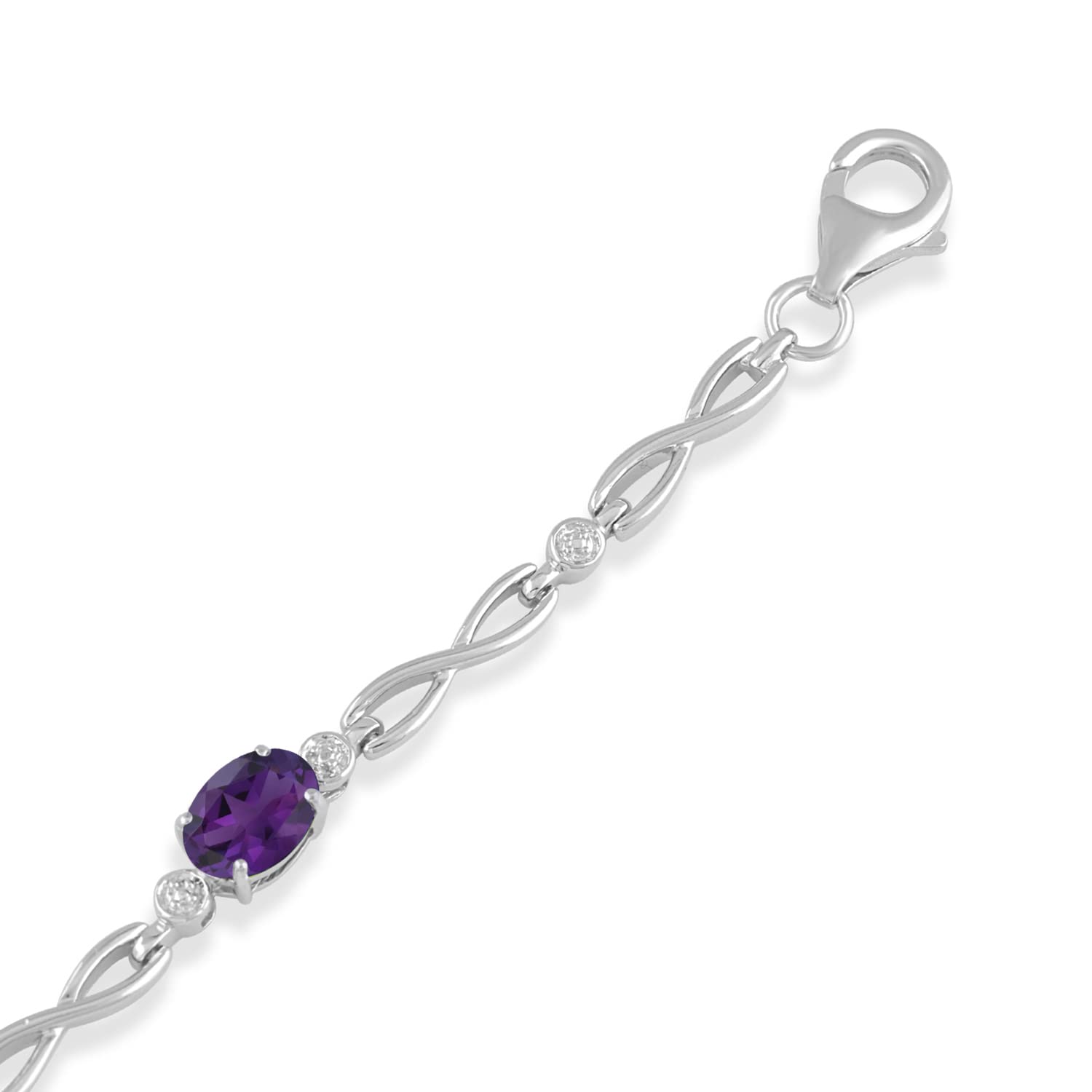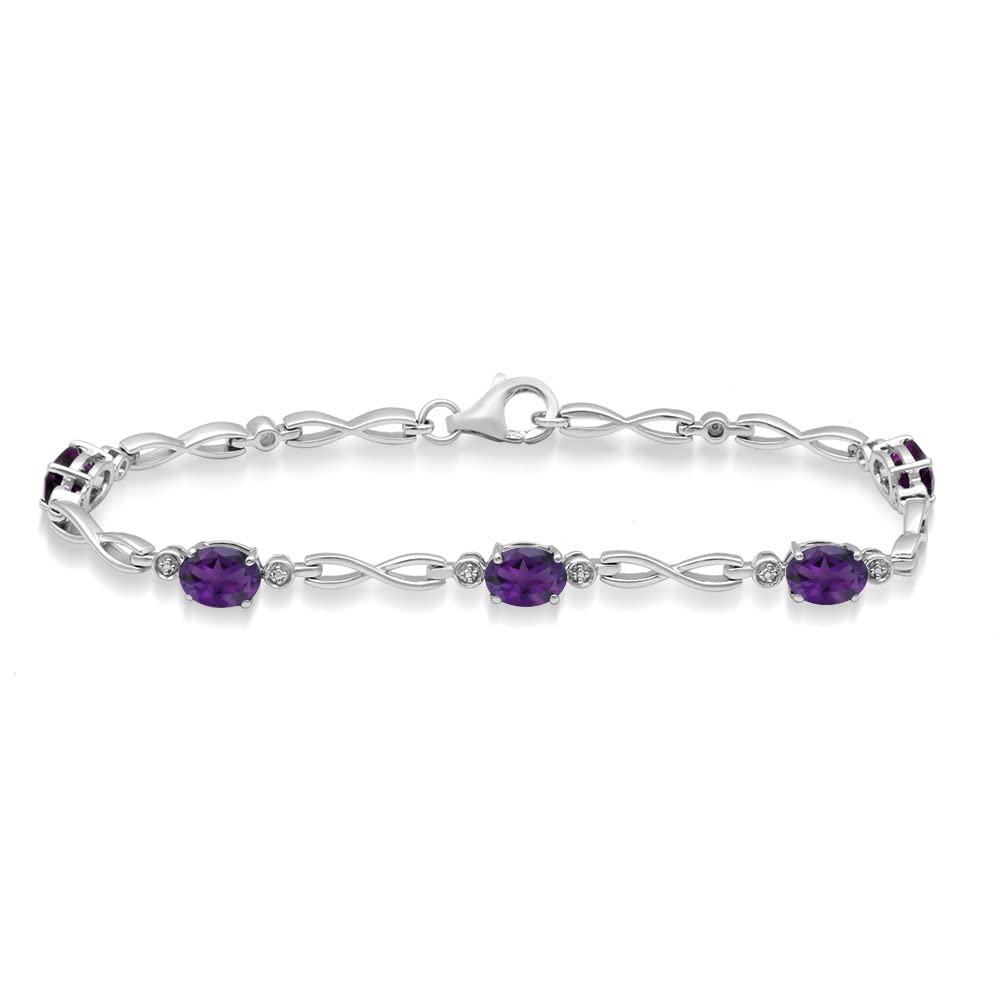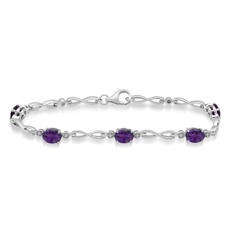 • Sterling Silver with Amethyst Link Bracelet, 7.25"
