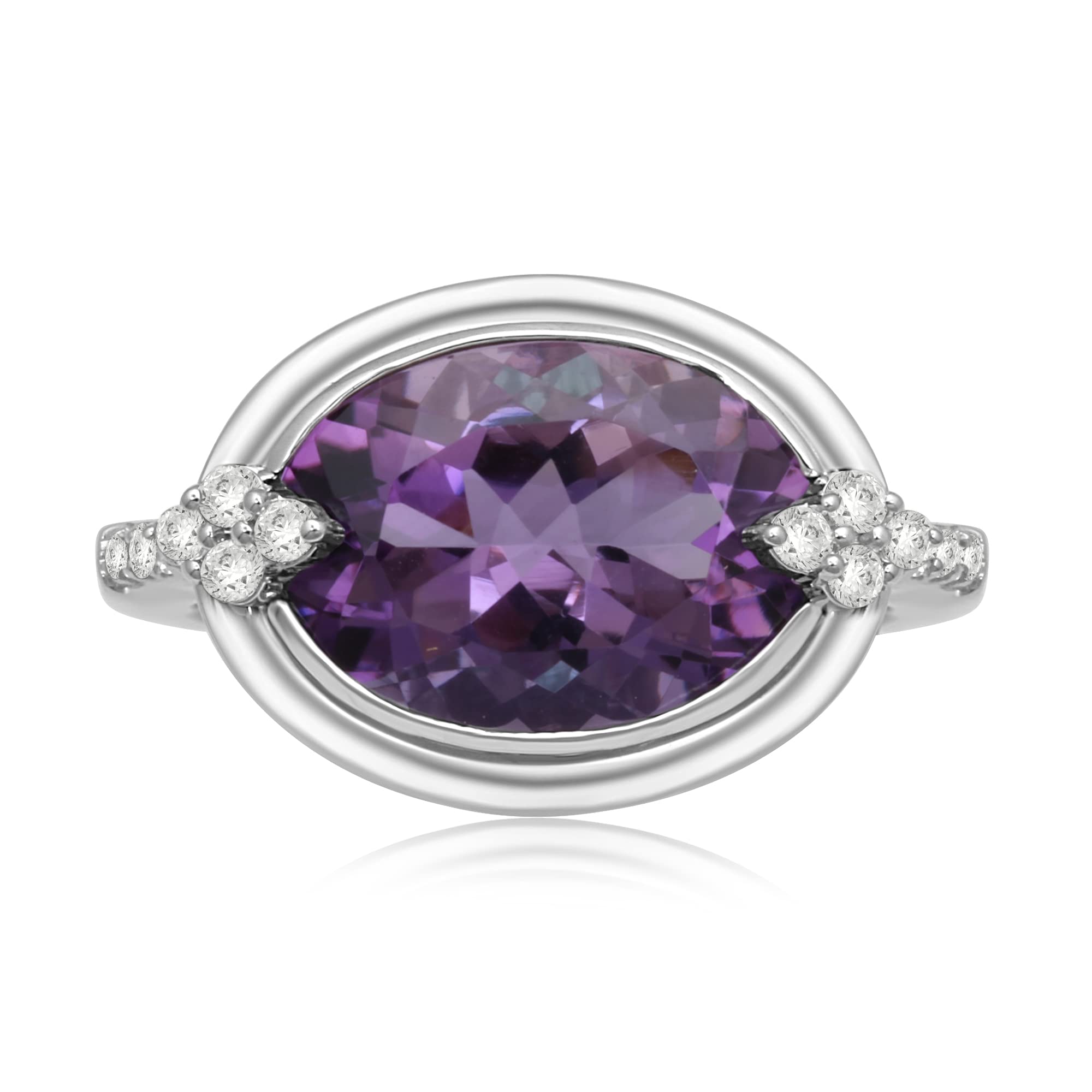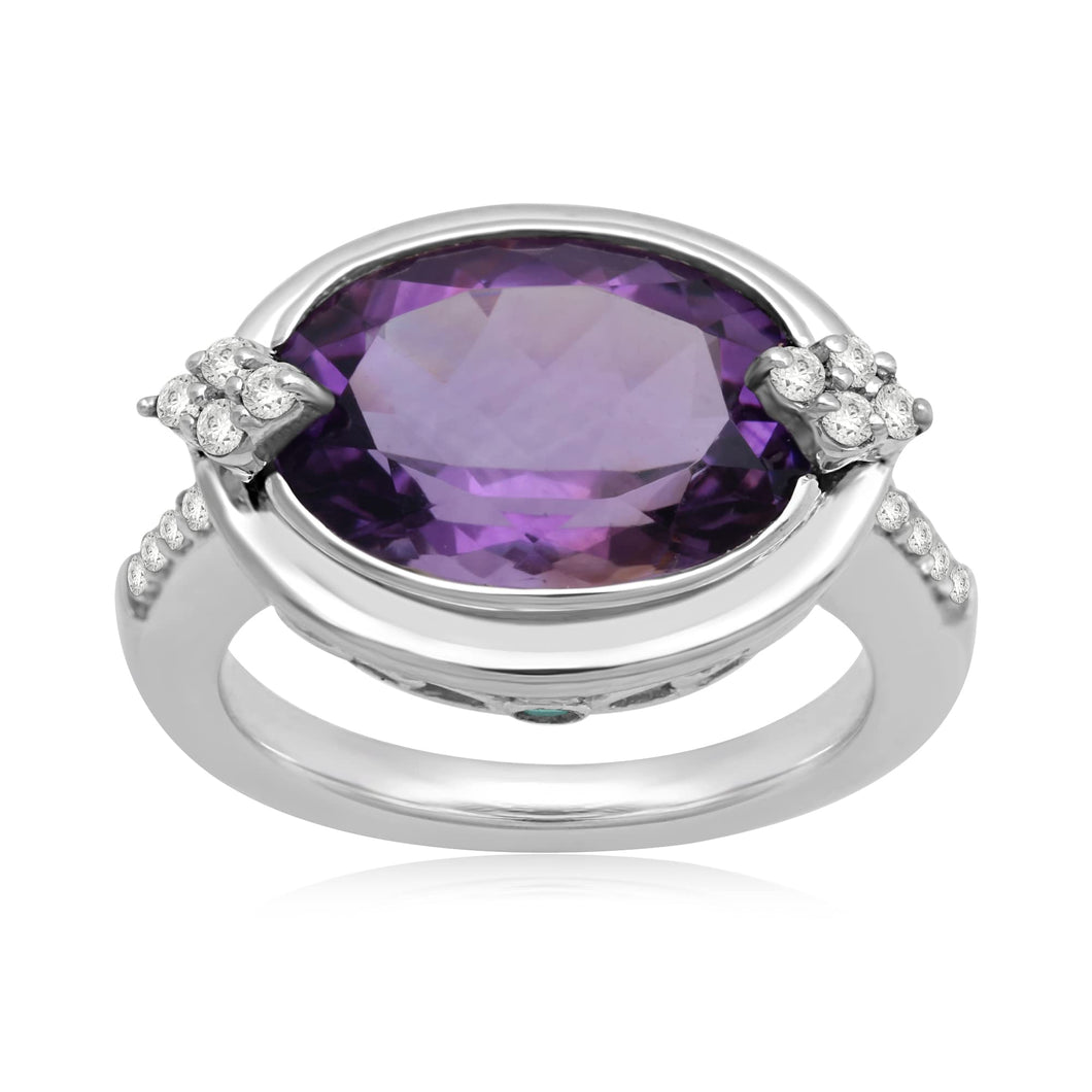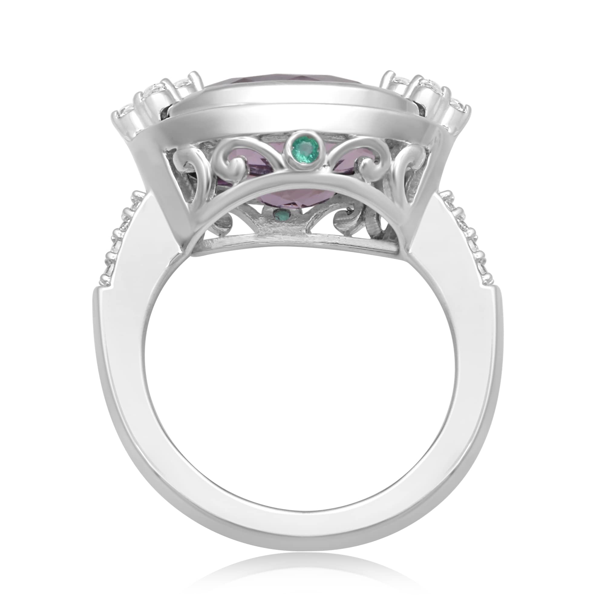 Details: Sterling Silver With Amethyst,White Topaz and Emerald Gemstone Ring