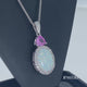 • Sterling Silver with Cabochon Oval Created Opal with Trill Created Pink Sapphire and Round Created White Sapphire Pendant Necklace