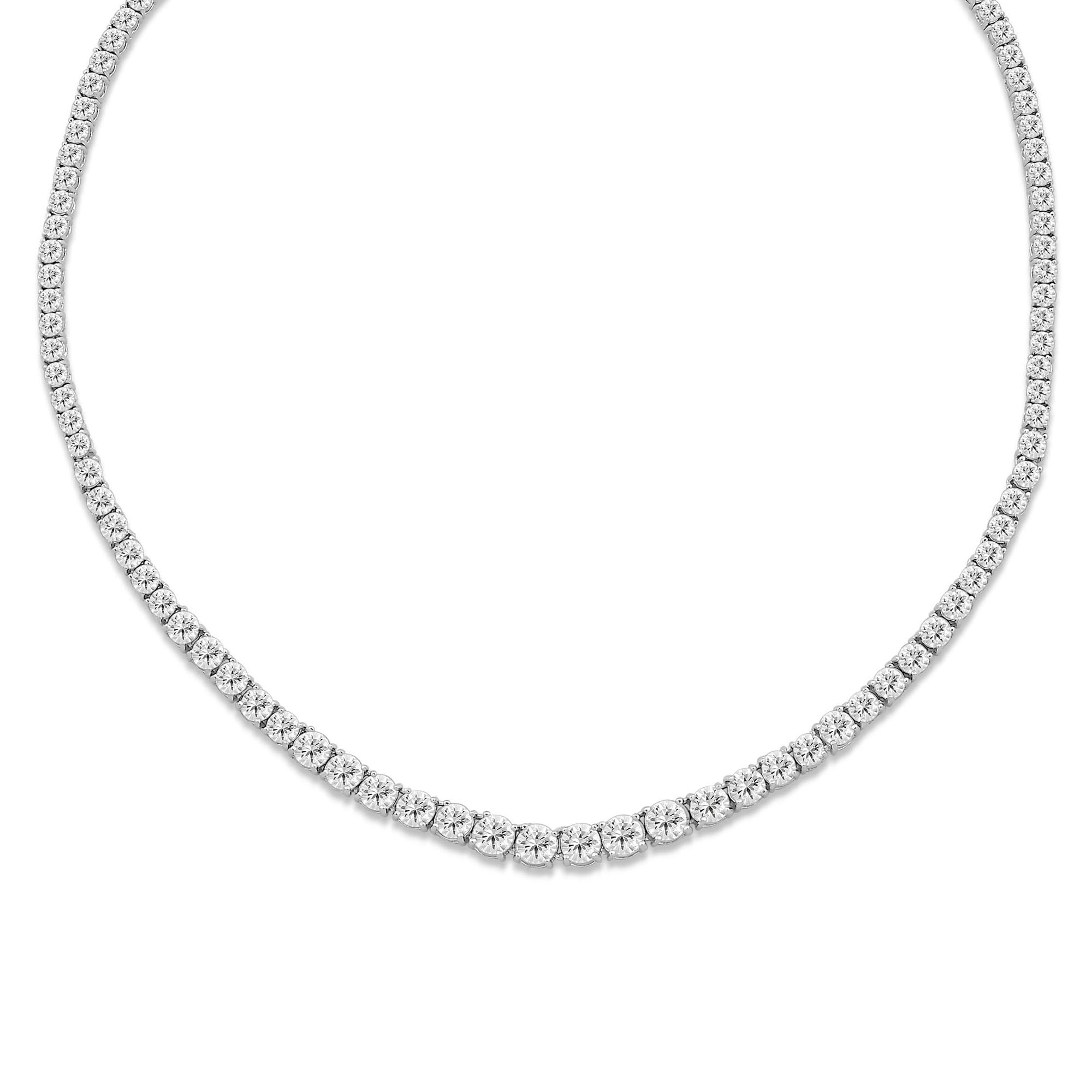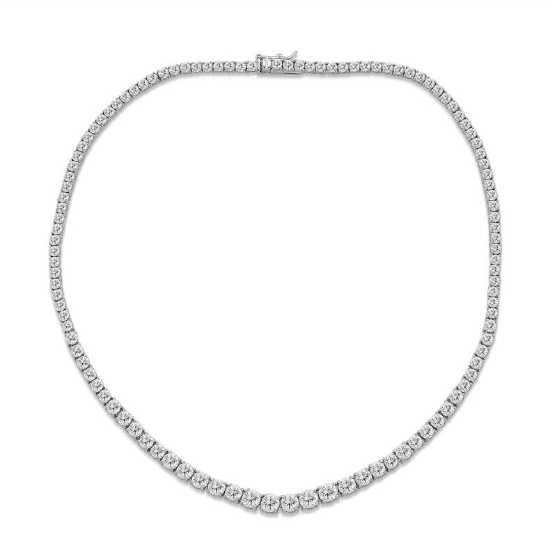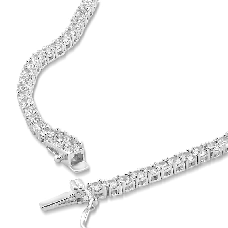 • Classic Tennis Necklace in Sterling Silver with Round Clear White Cubic Zirconia
