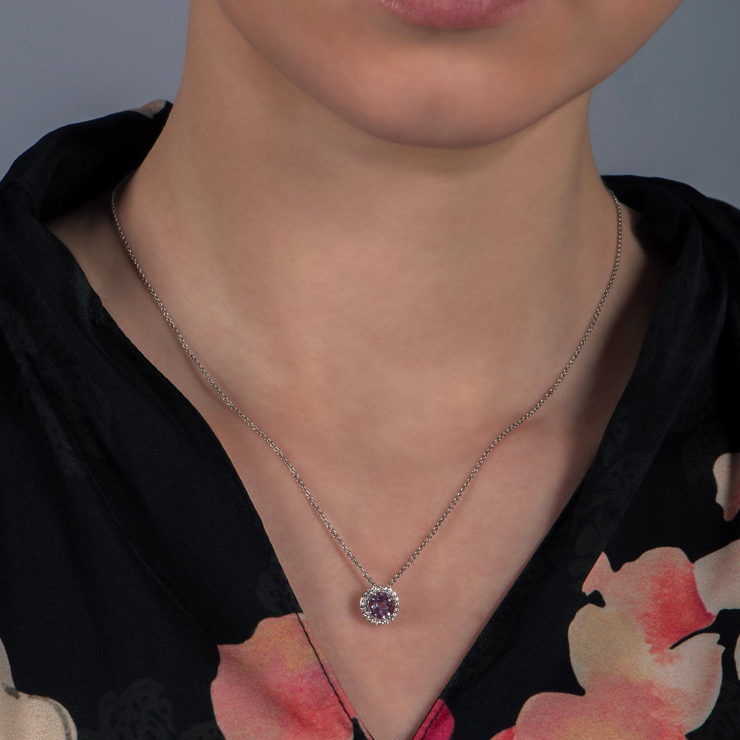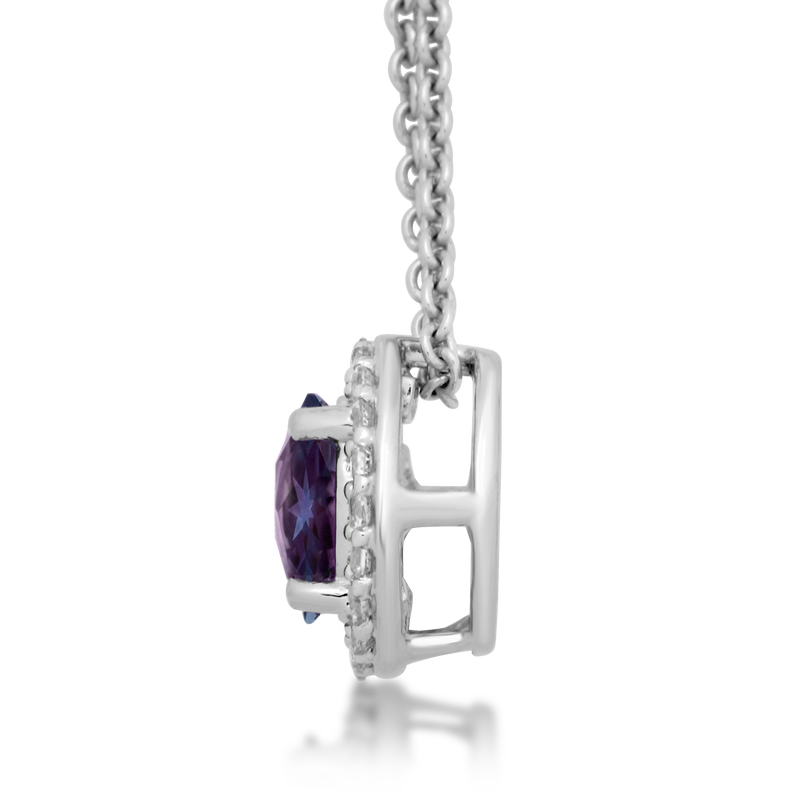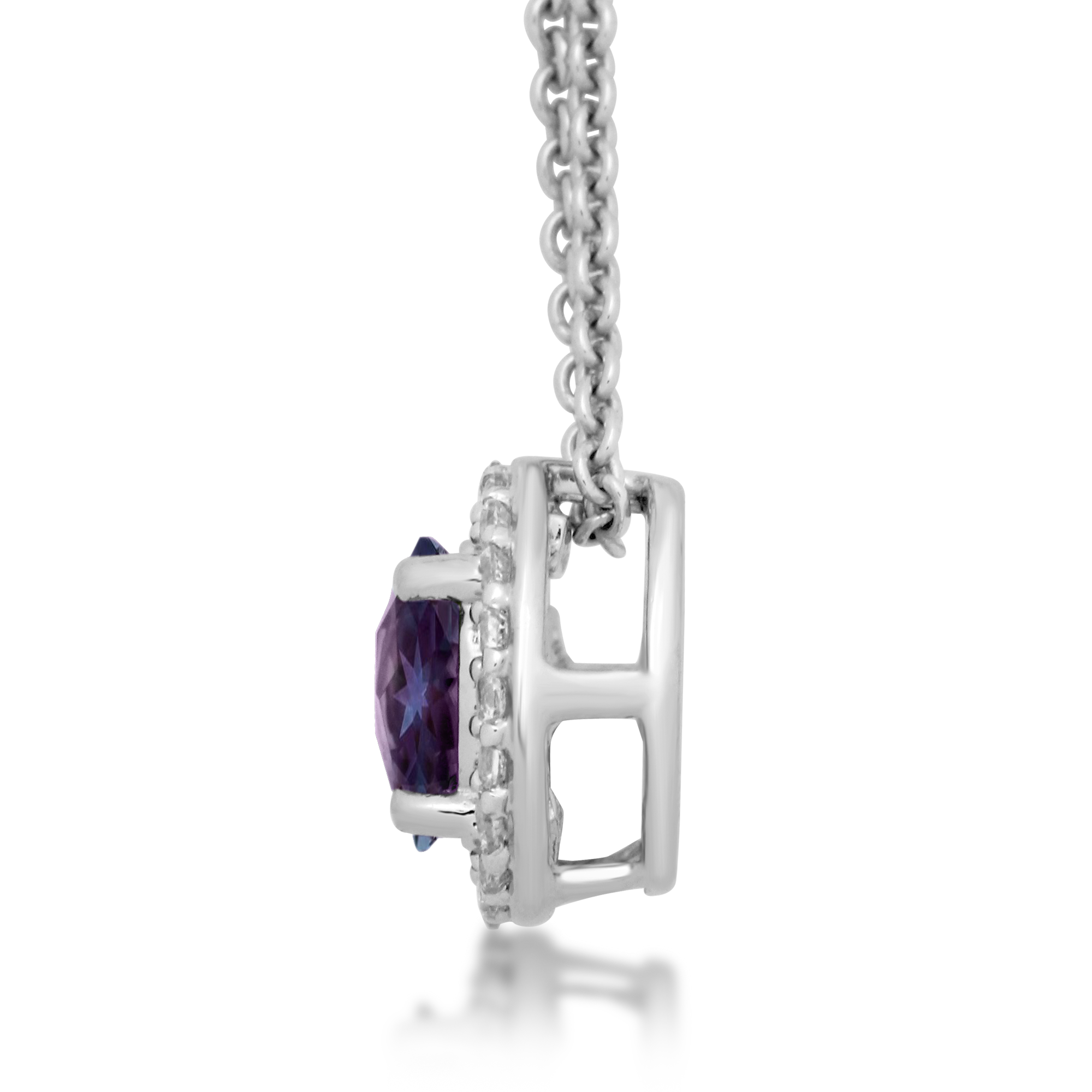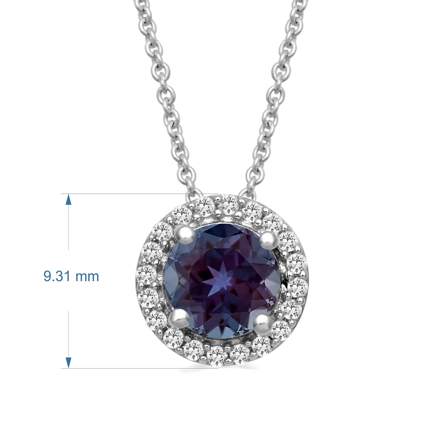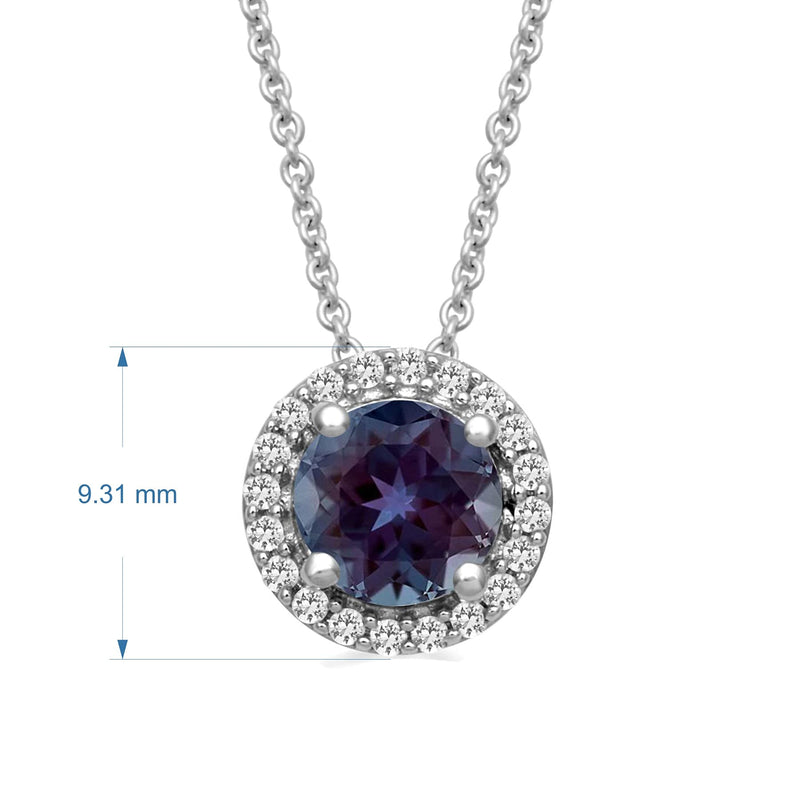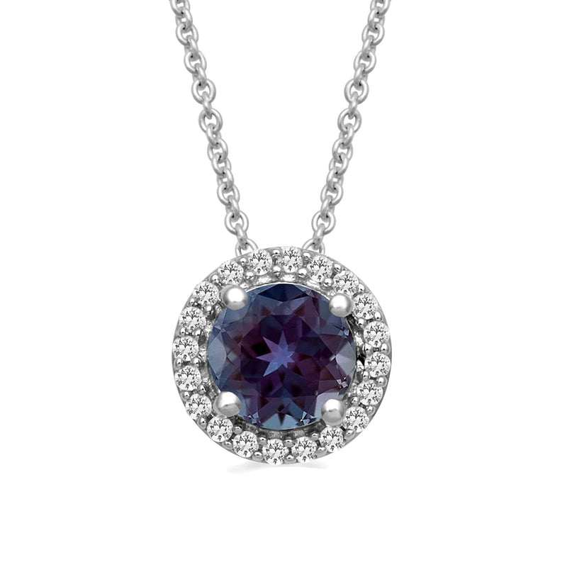 • Sterling Silver with Created Alexandrite and Created White Sapphire Halo Pendant Necklace
