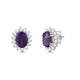 • Load image into Gallery viewer, Jewelili Sterling Silver with Created Amethyst and Created White Sapphire Halo Stud Earrings