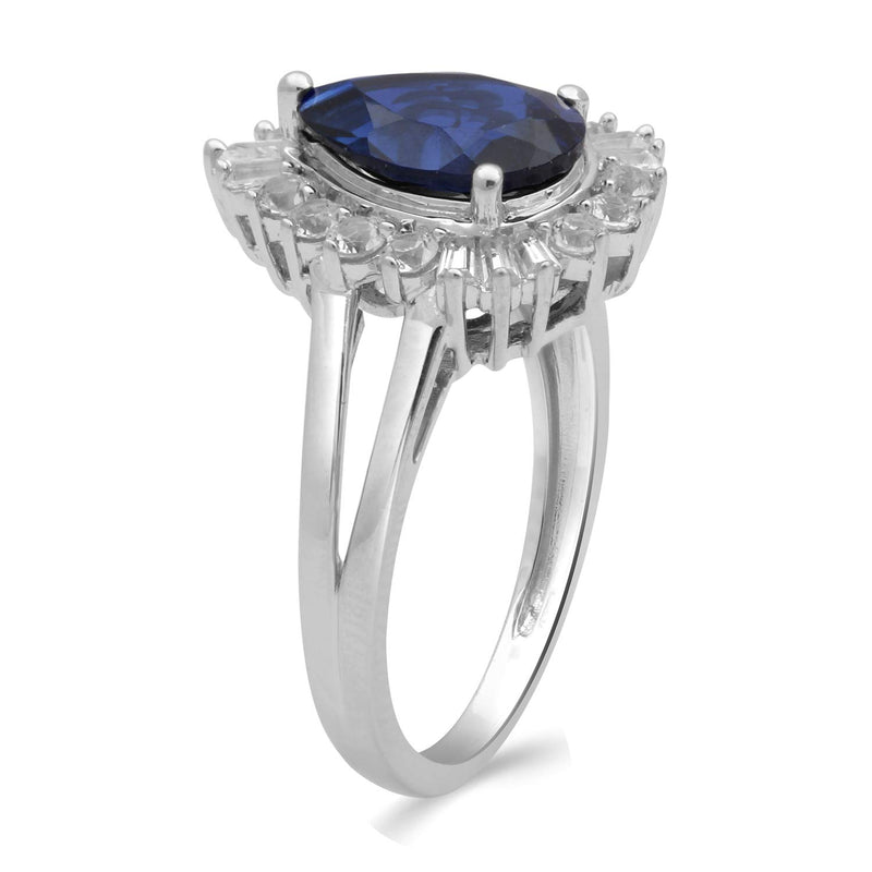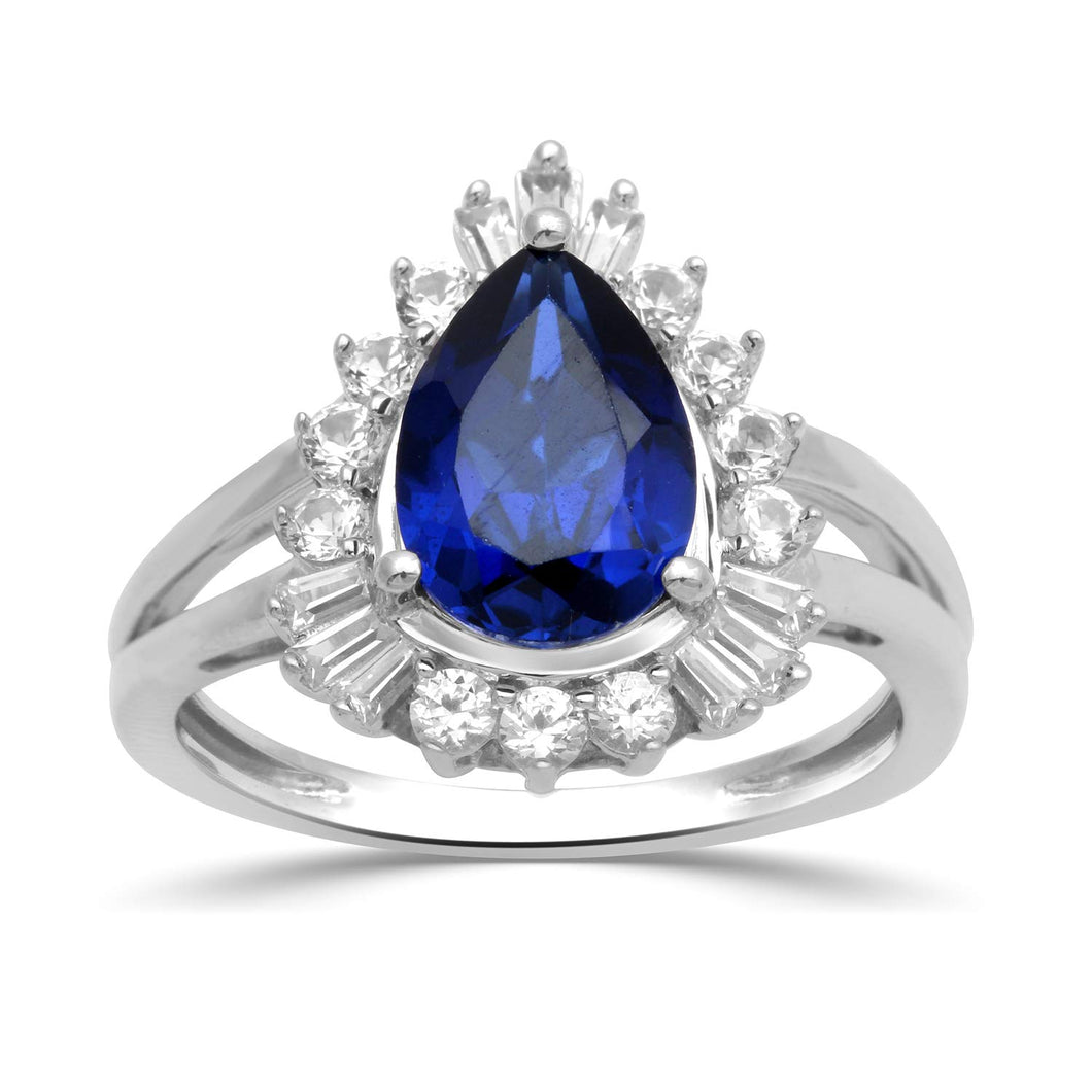 Details: Sterling Silver With Created Blue Sapphire and Created White Sapphire Teardrop Ring