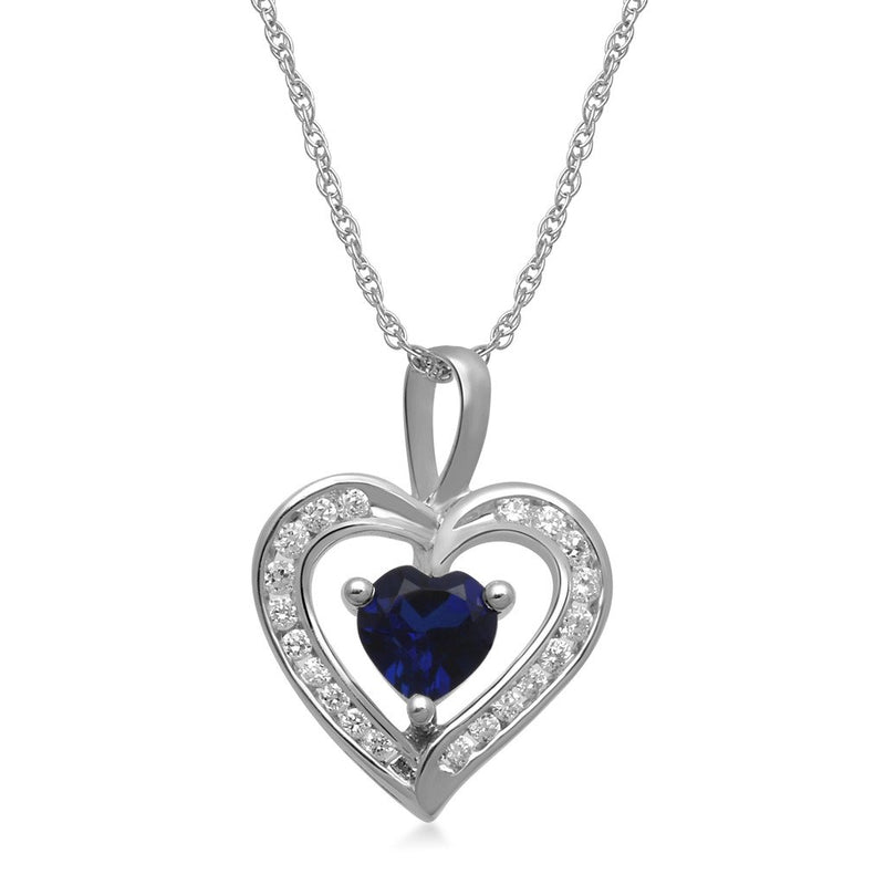 Details: Sterling Silver With Created Blue Sapphire and Cubic Zirconia Heart Pendant Necklace
