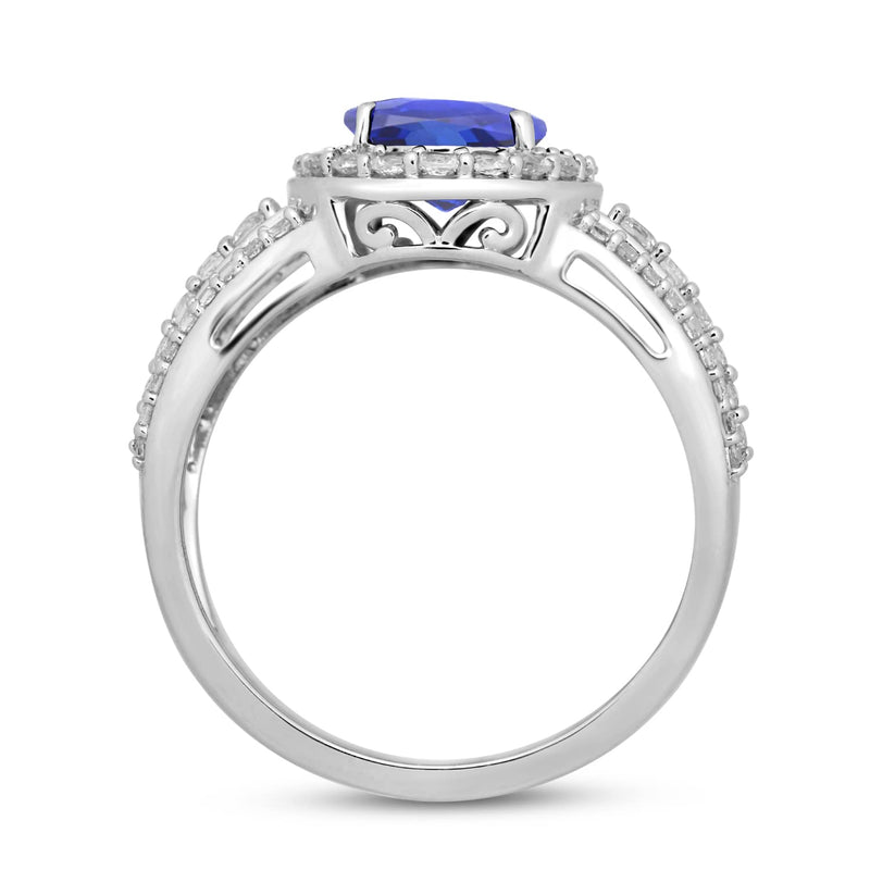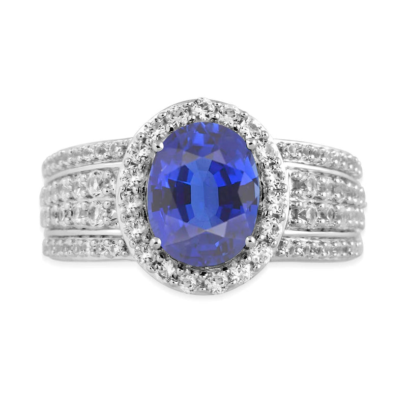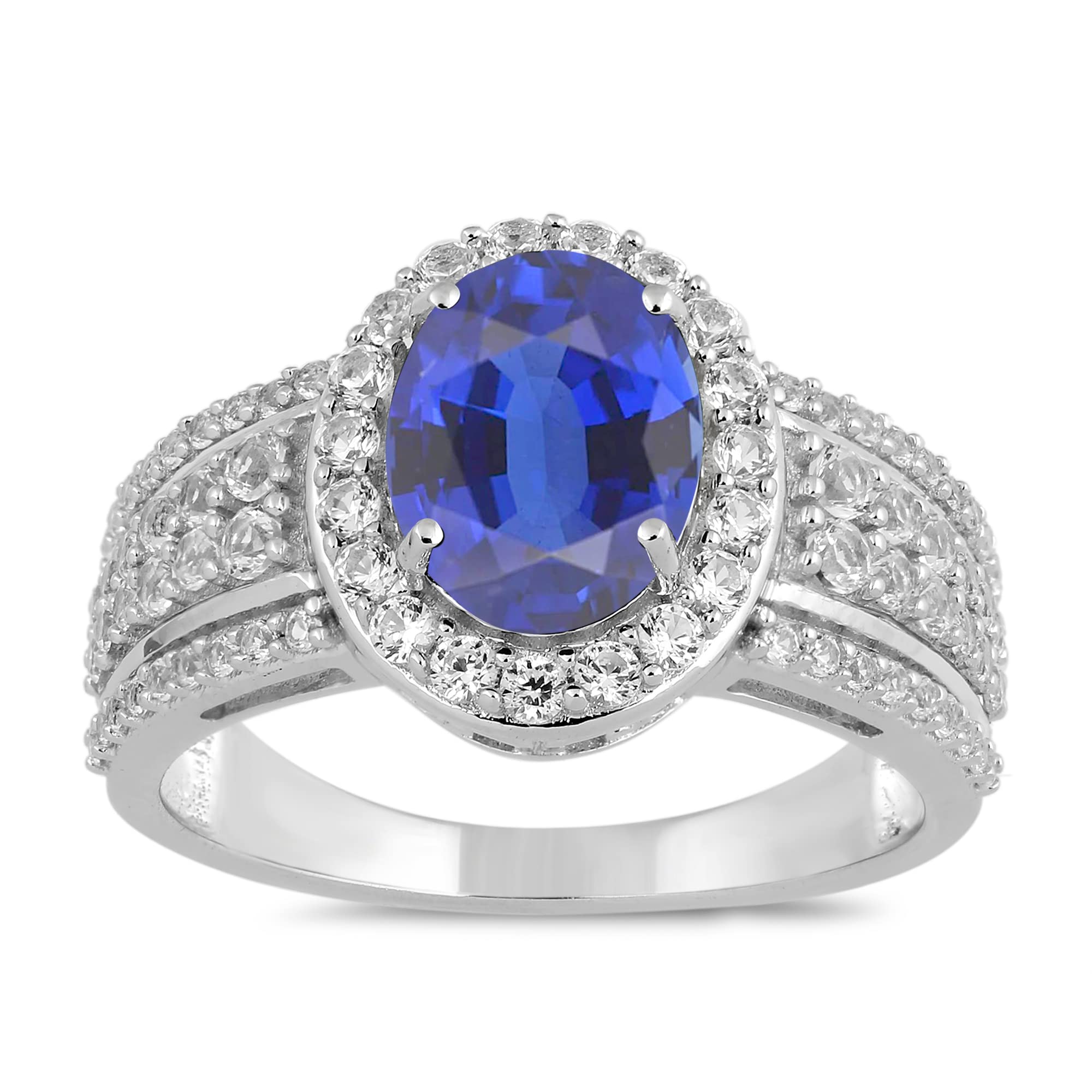 • Sterling Silver With Created Ceylon Sapphire and Created White Sapphire Engagement Ring