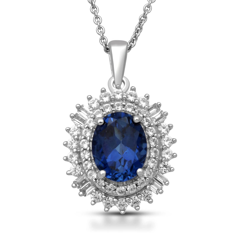 • Sterling Silver With Created Ceylon Sapphire and Created White Sapphire Pendant Necklace
