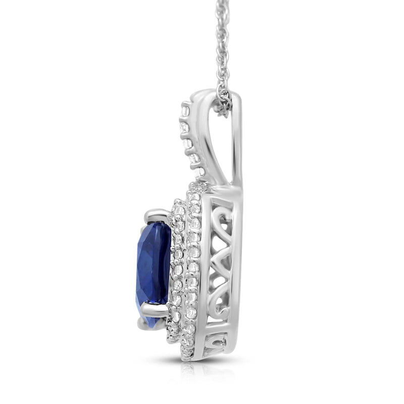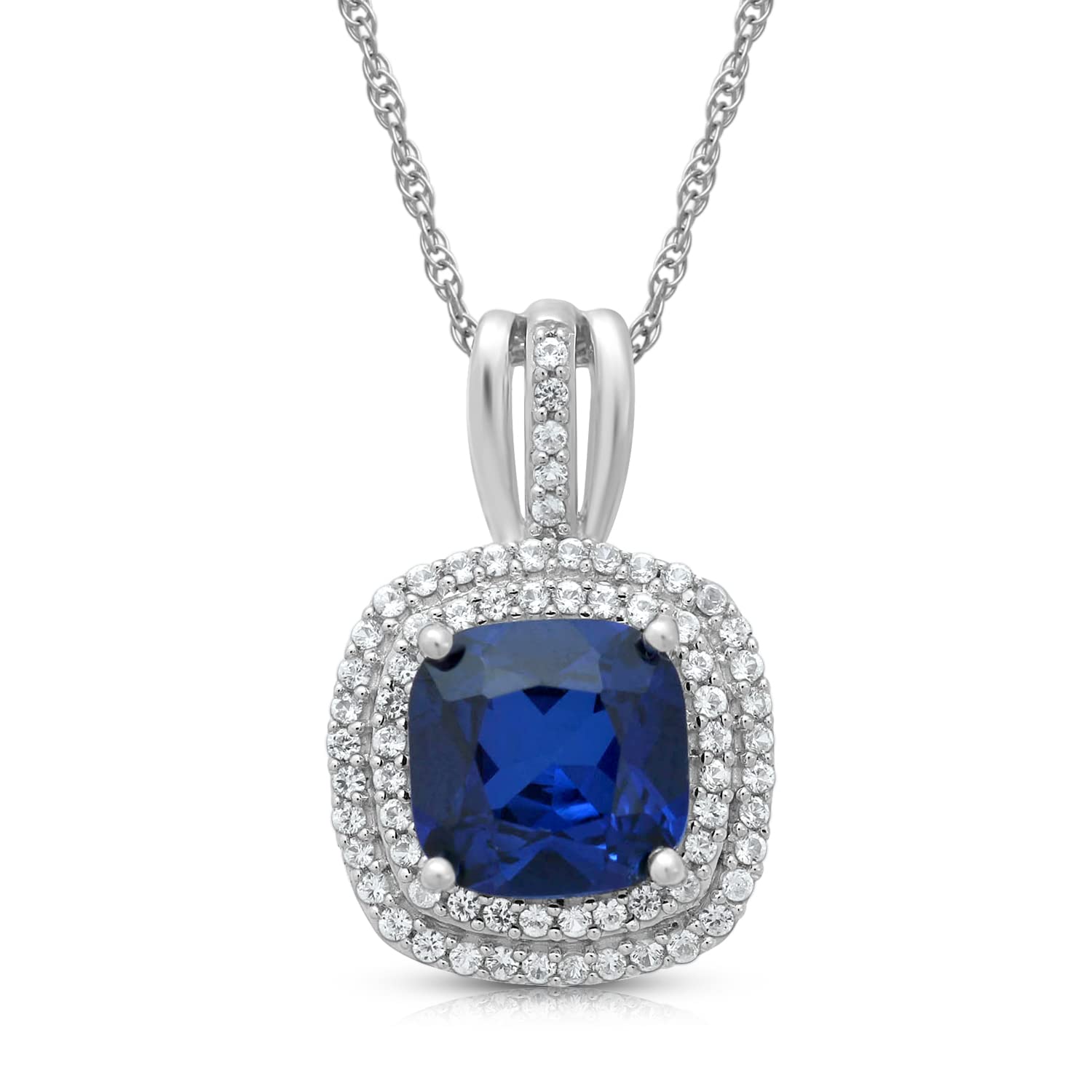 • Sterling Silver With Created Ceylon Sapphire and Created White Sapphire Pendant Necklace