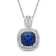 • Load image into Gallery viewer, Jewelili Cushion Shape Pendant Necklace with Created Ceylon Sapphire and Created White Sapphire in Sterling Silver View 1