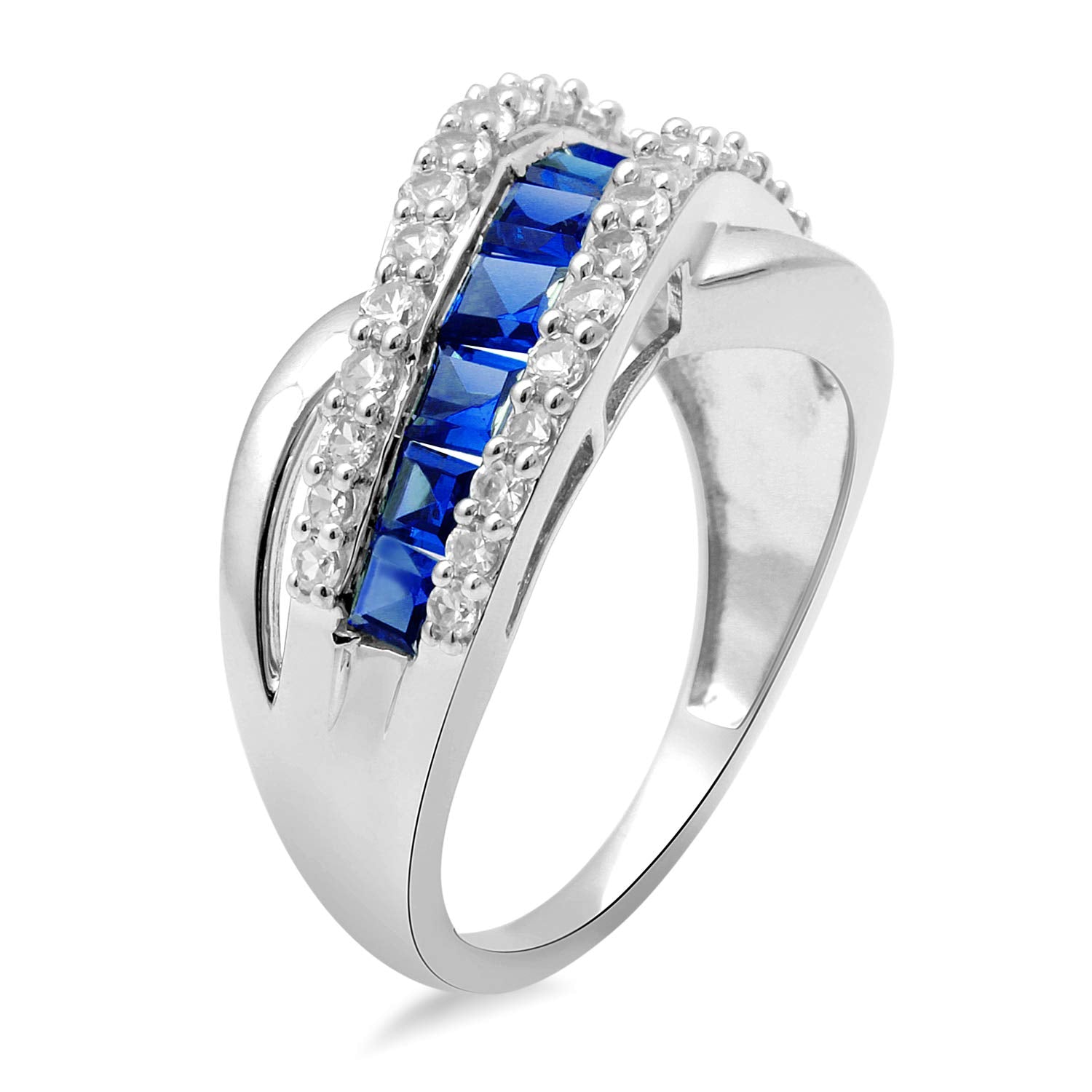 • Sterling Silver with Created Ceylon Sapphire and Created White Sapphire Ring