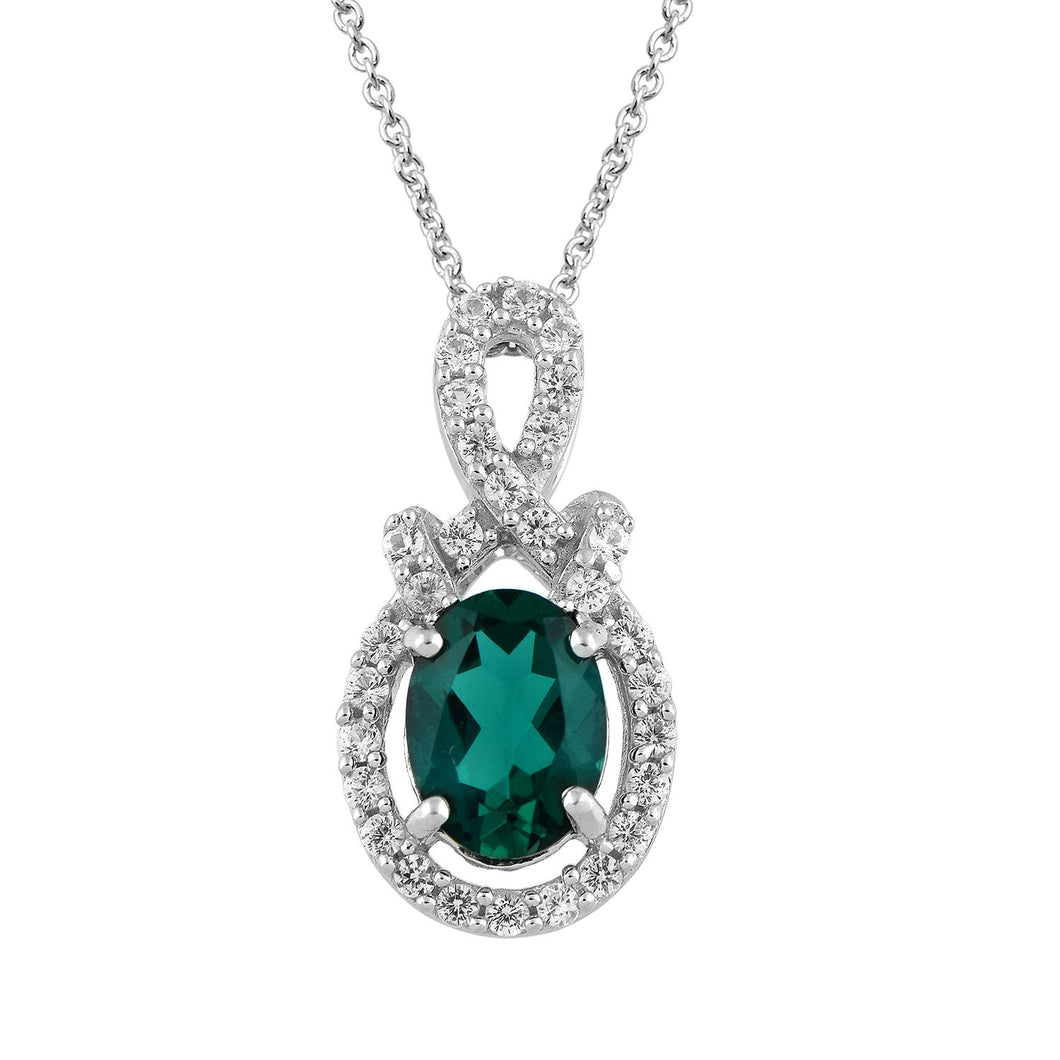 Details: Sterling Silver With Created Emerald and Created White Sapphire Twisted Halo Pendant Necklace