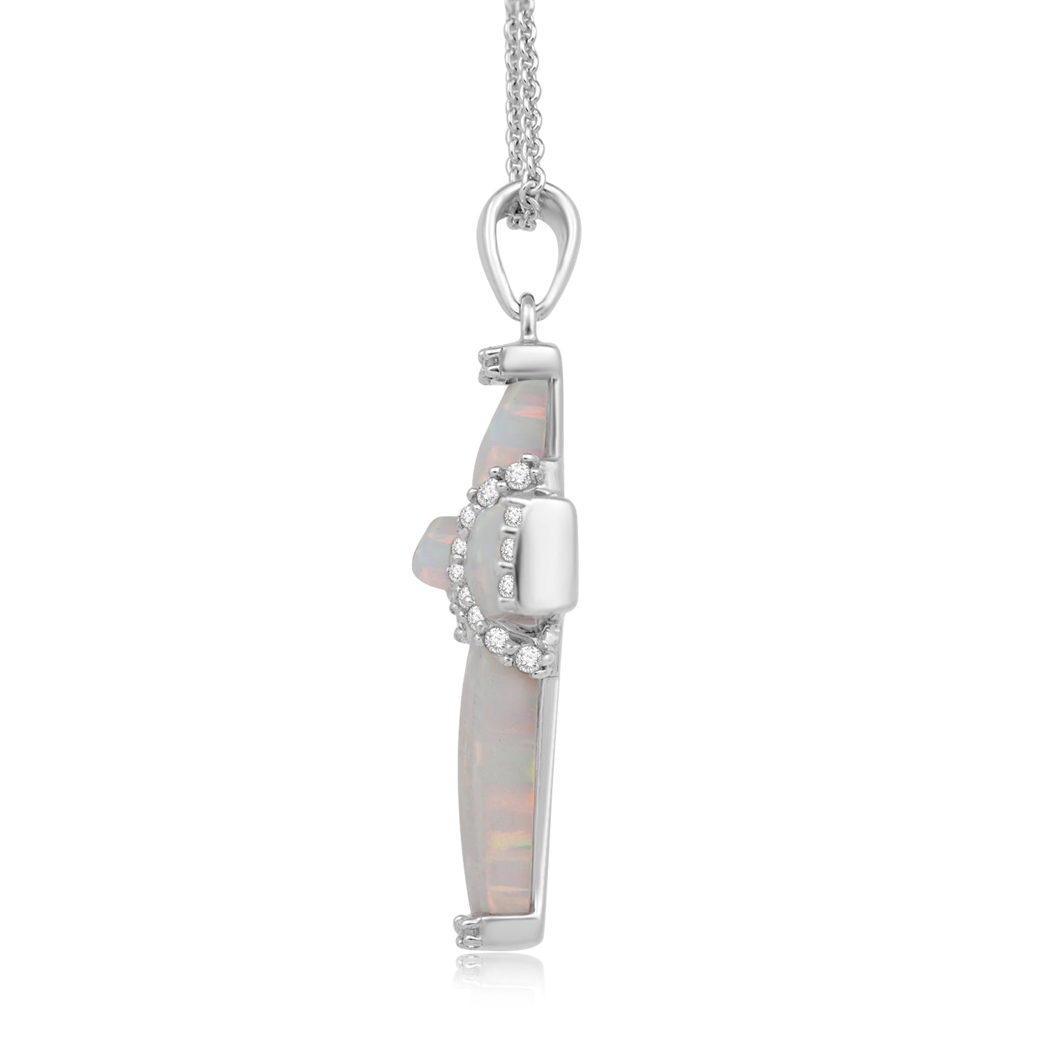 • Sterling Silver with Created Opal and Created White Sapphire Cross Pendant Necklace