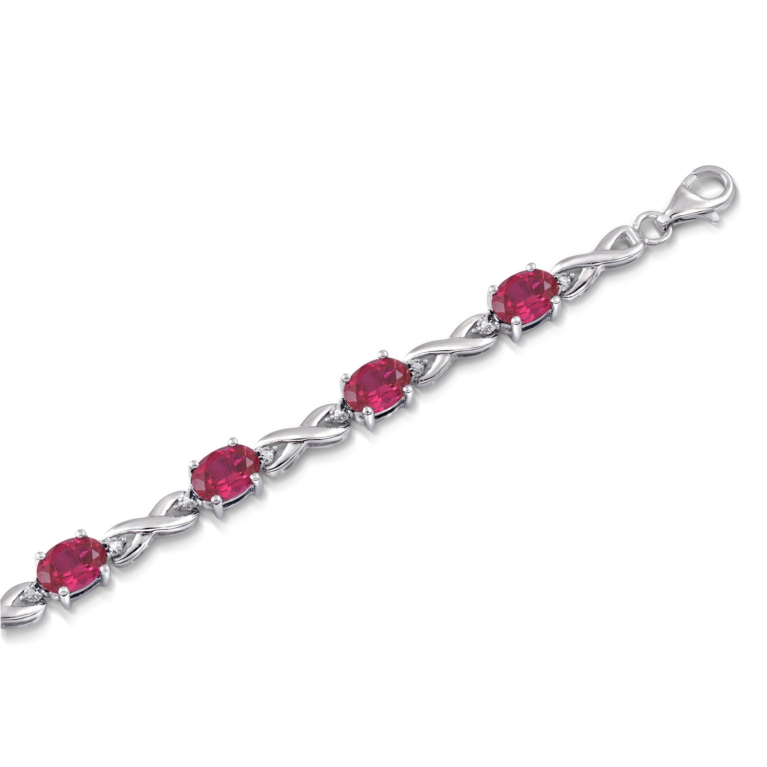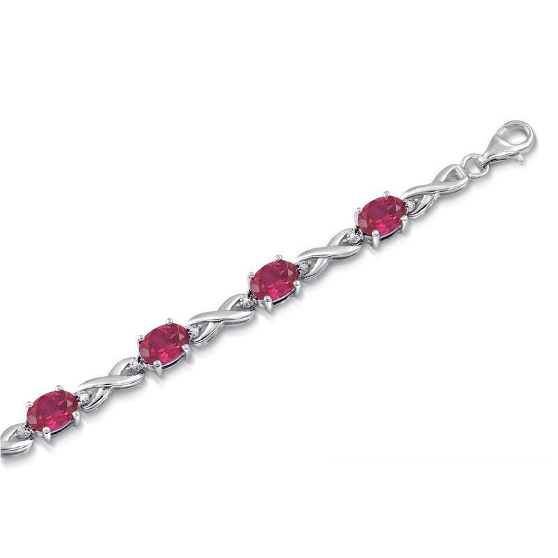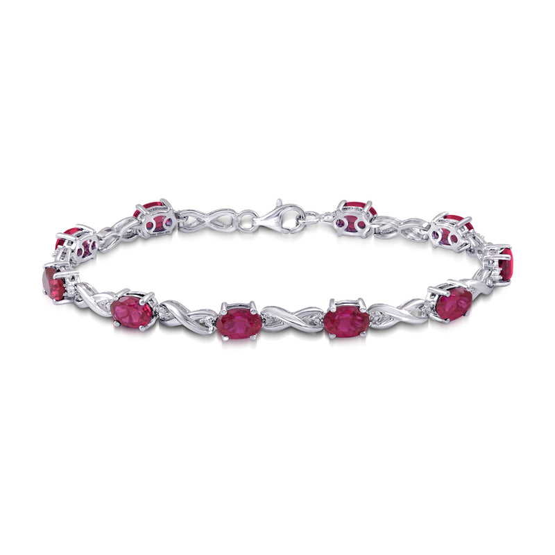• Sterling Silver With Created Ruby and White Diamond Accent Bracelet, 7.25"