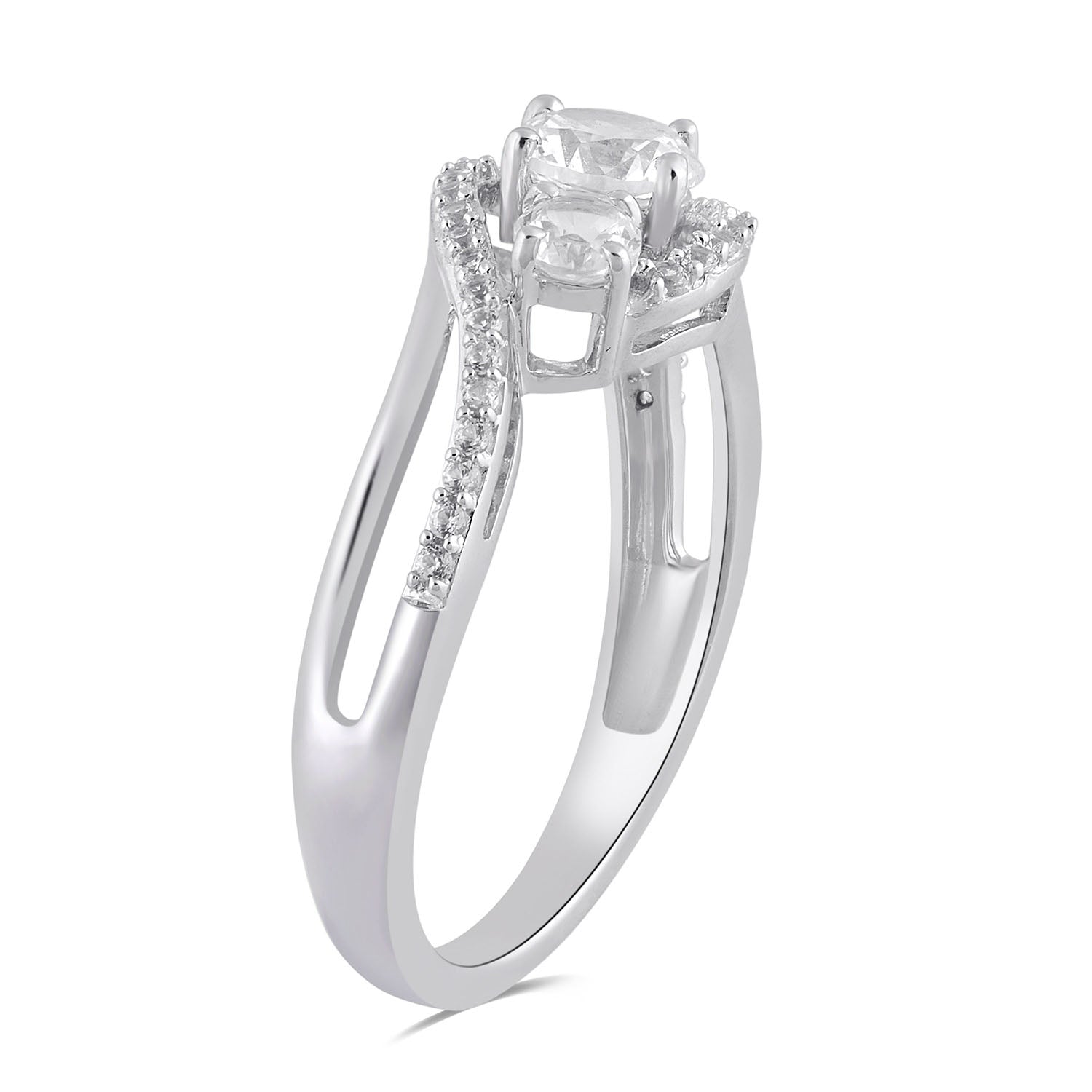• Sterling Silver With Created White Sapphire Three Stone Ring