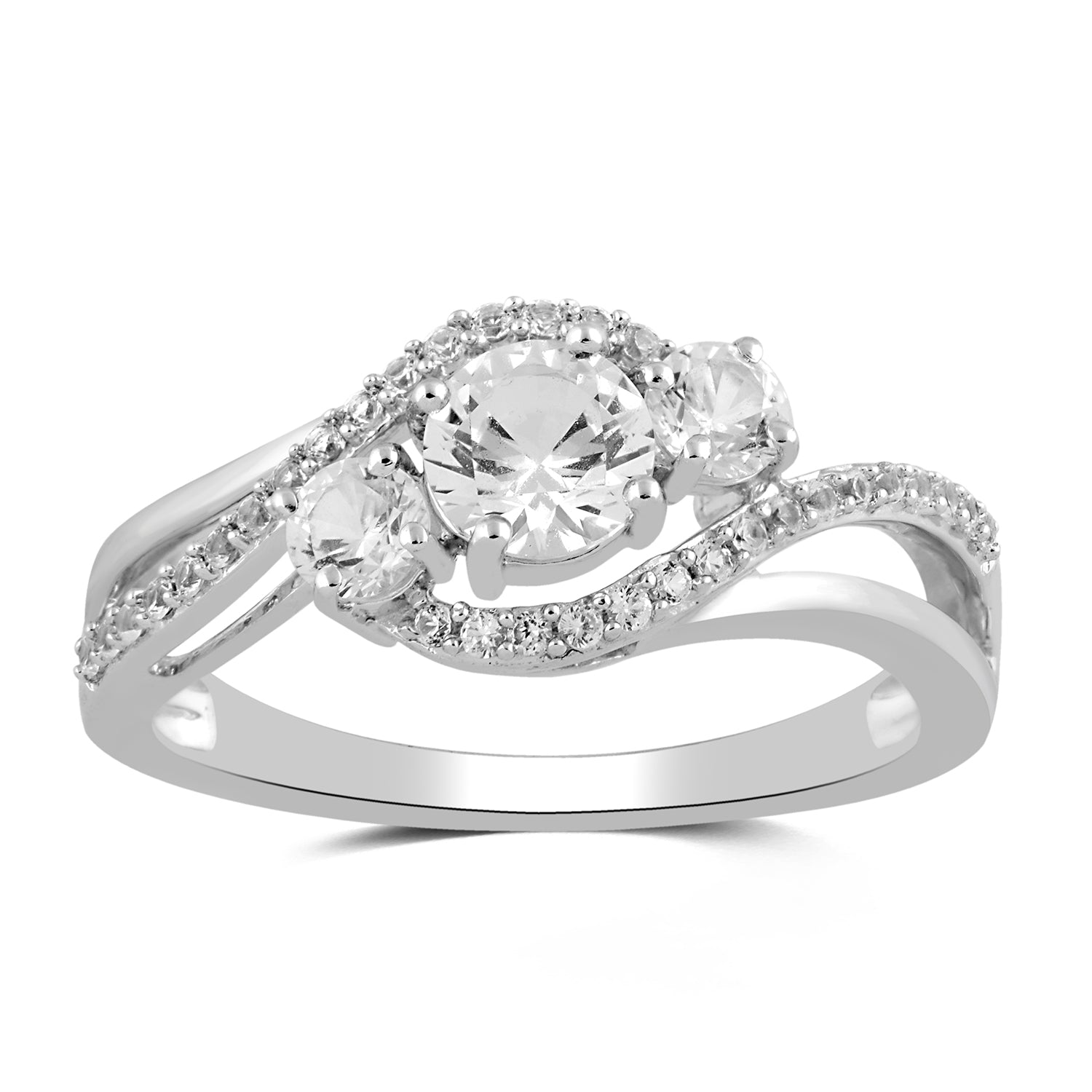 Jewelili Sterling Silver With Created White Sapphire Three Stone Ring